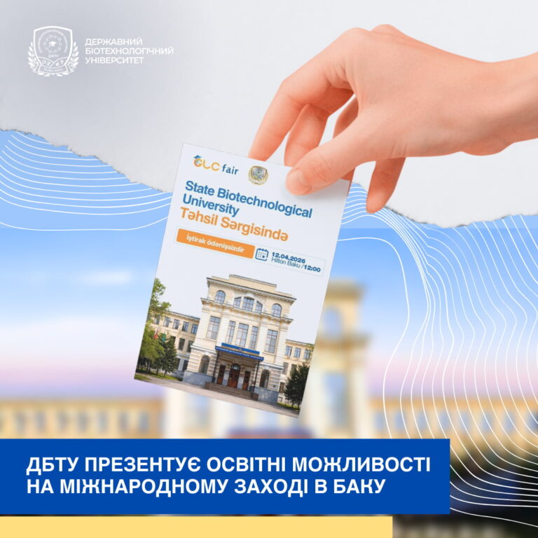 У межах реалізації угоди про співробітництво, укладеної з партнером – компанією «Оstwind», 12 квітня 2026 року в місті Баку відбудеться освітня виставка, на якій буде представлено Державний біотехнологічний університет. Участь у заході спрямована на популяризацію освітніх програм університету серед іноземних…