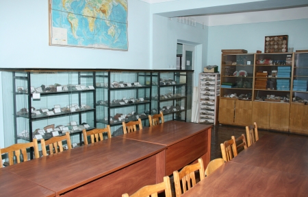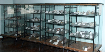 - Колекція мінералів нараховує 340 експонатів, які розміщуються у шафах згідно їх хімічної класифікації. Найширше представлені силікати та алюмосилікати, які мають різний колір, зовнішні форми тощо.