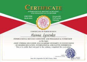 Міжнародне стажування та підвищення кваліфікації викладачівСертифікати викладачів про участь у конференціях Сертифікати студентів про участь у конференціях