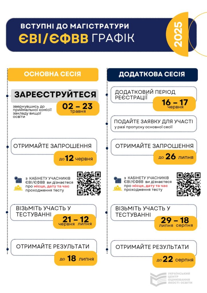 Календарний план організації та проведення у 2025 році вступних випробувань (ЄВІ/ЄФВВ) до магістратури