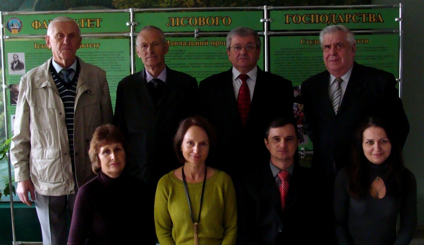 д.с.-г.н., проф. В.О. Поляков, д.с.-г.н., проф. М.А. Лохматов, старш. лаборант К.Г. Чоломбитько, к.е.н., доц. А.С. Торосов, к.с.-г.н., доц. О.П. Андрущенко, старш. викладач М.Є. Трофименко, к.с.-г.н., доц., заступник голови Державного комітету лісового господарства України, завідувач кафедри М.М. Ведмідь, к.с.-г.н., доц. С.І. Мусієнко, Л.І. Ткач, к.с.-г.н., доц. Г.Б. Гладун, викладач О.І. Лялін, к.с.-г.н., доц. О.Б. Величко, Т.С. Шатова