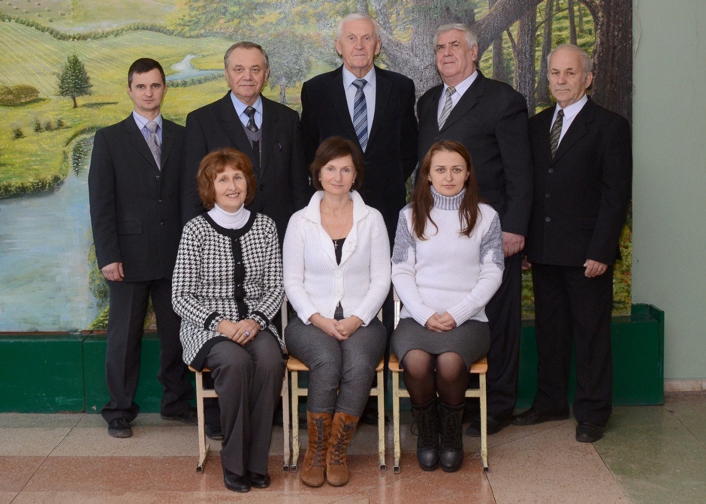 Верхній ряд: к.с.-г.н., доц. Андрущенко О.П.; к.с.-г.н., доц. Слюсарчук В.Є.; к.с.-г.н., доц. Булат А.Г.; старш. викладач Трофименко М.Є.; к.с.-г.н., доц. Мусієнко С.І.; викладач Лялін О.І.; викладач Діденко М.М.