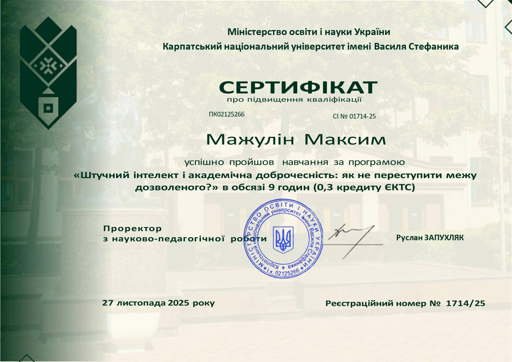 | ППОК1.2.2 | Актуальні питання судочинства в Україні | 4 | залік |