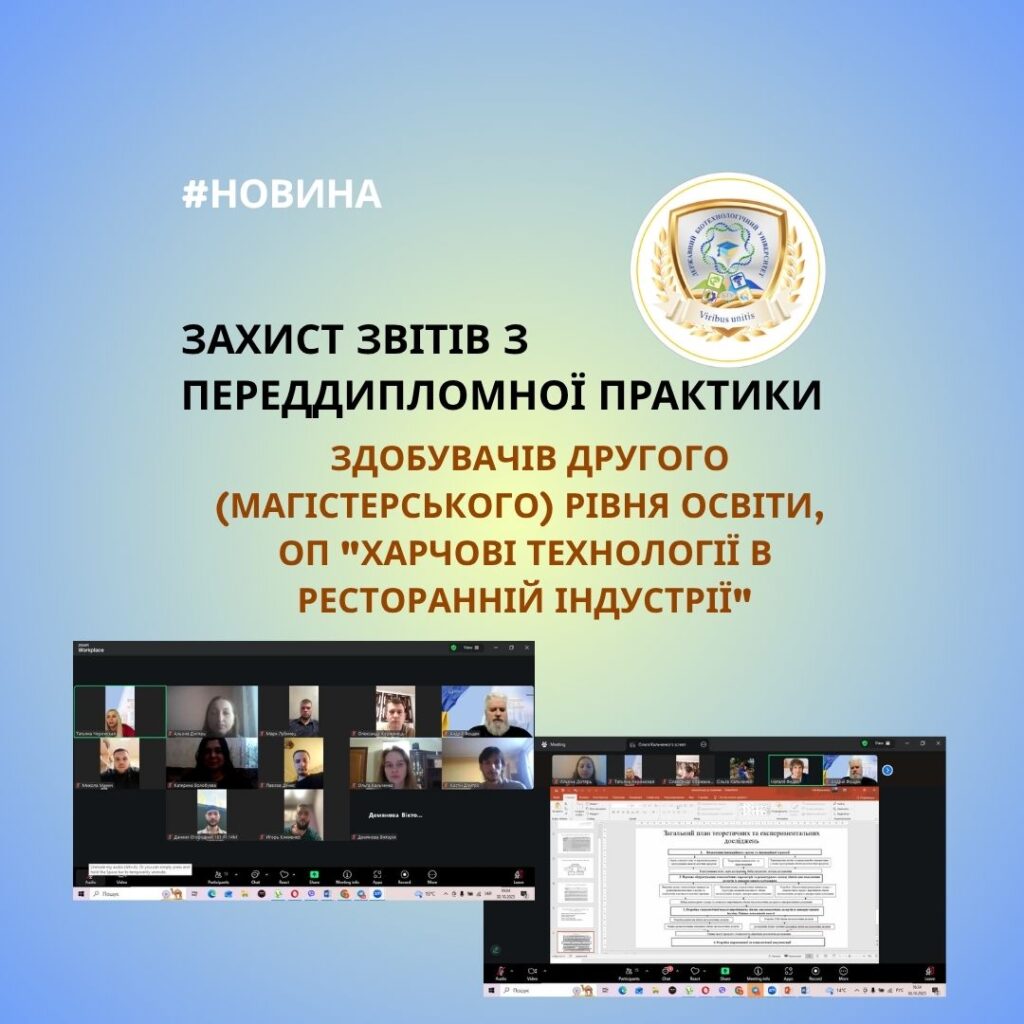Захист звітів з переддипломної практики здобувачів другого (магістерського) рівня освіти, ОП “Харчові технології в ресторанній індустрії”
