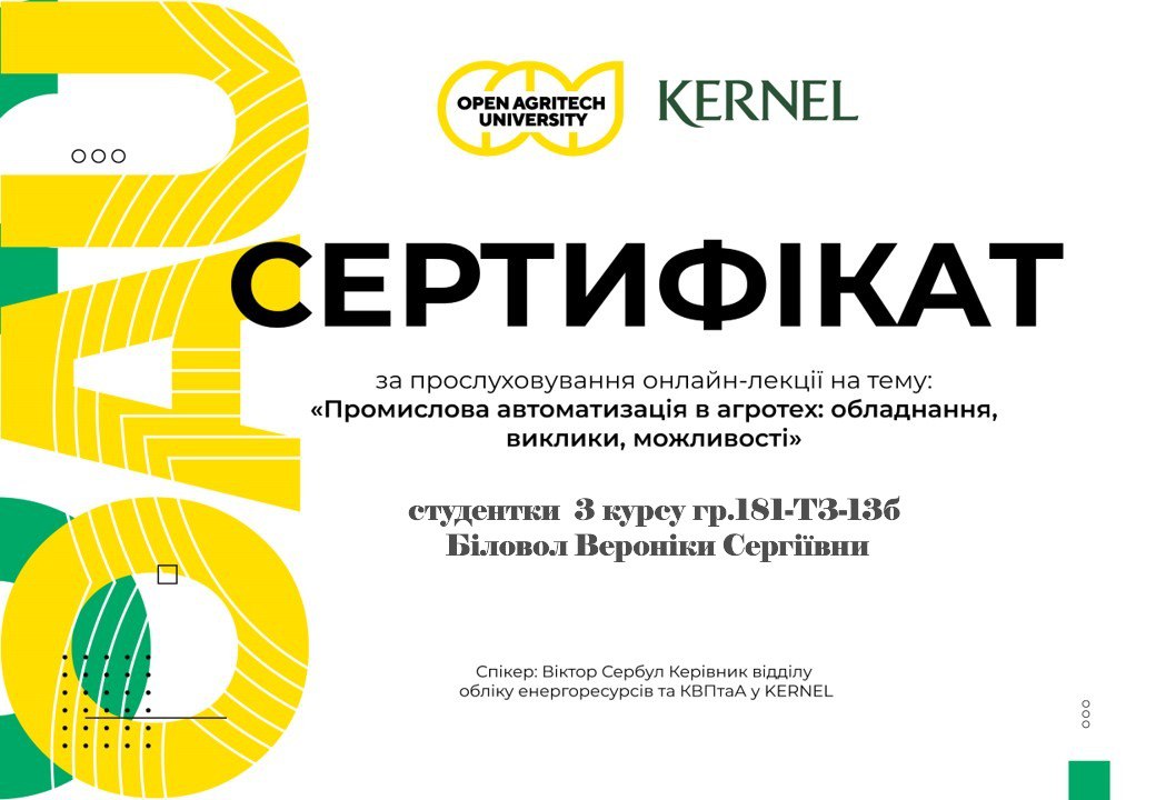 ОК «Автоматизація виробничих процесів та мікропроцесорні системи управління в зернопереробній галузі» |