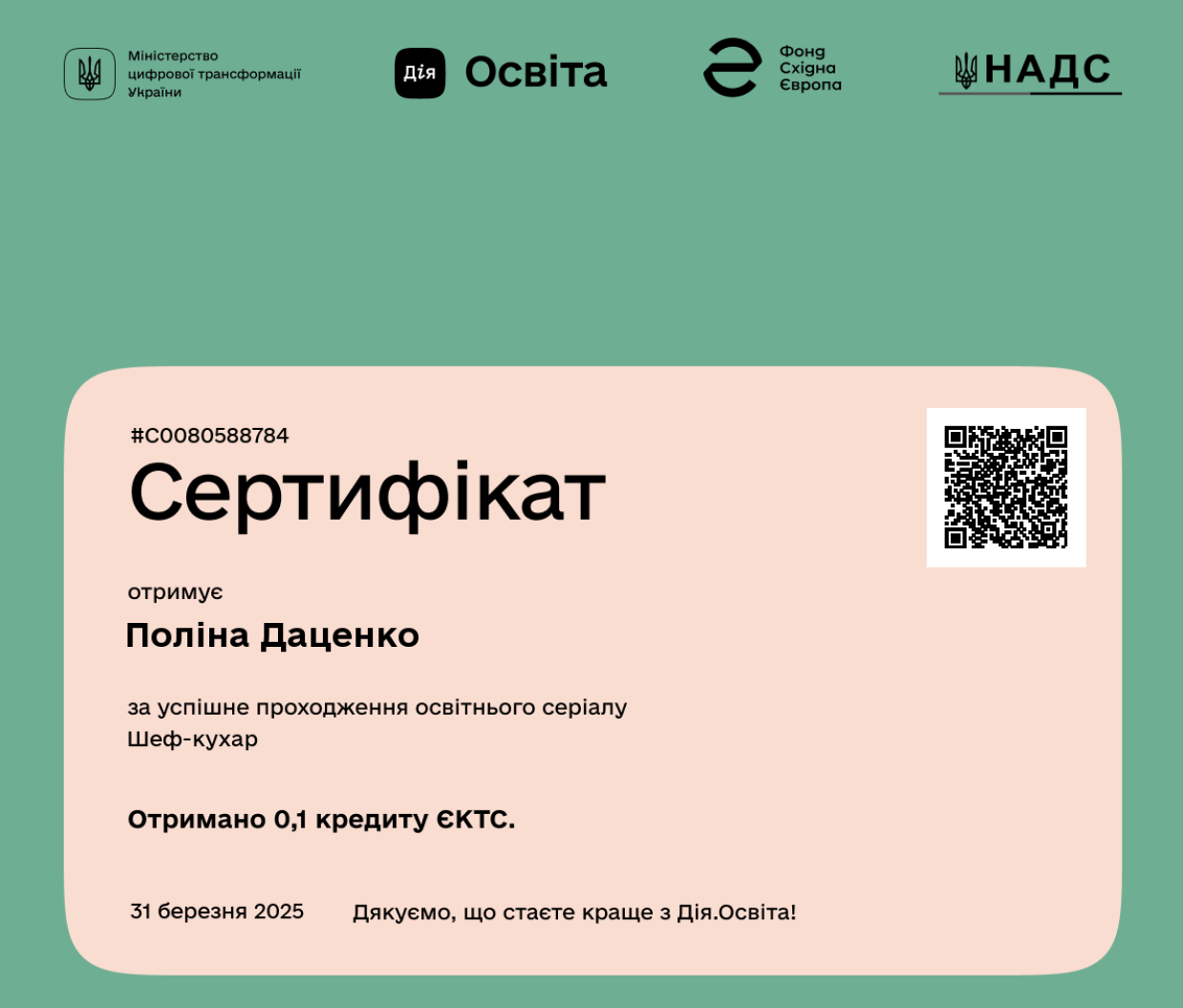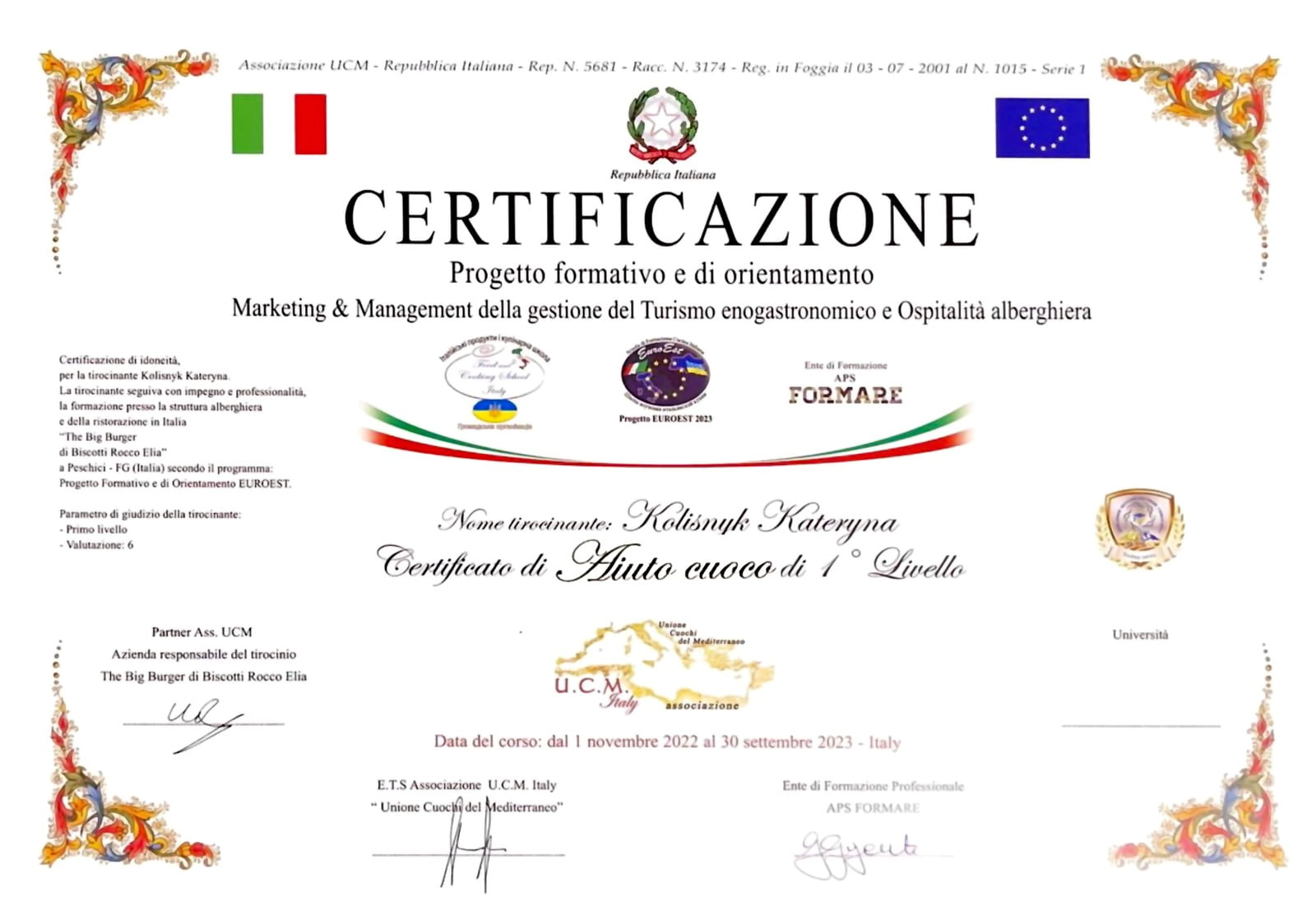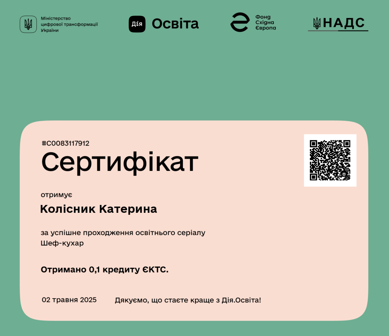 Колісник Катерина | ОК «Технологія харчової продукції в ресторанній індустрії» | Рішення комісії | |
