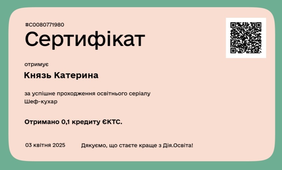 Князь Катерина | ОК «Технологія харчової продукції в ресторанній індустрії» | Рішення комісії | |