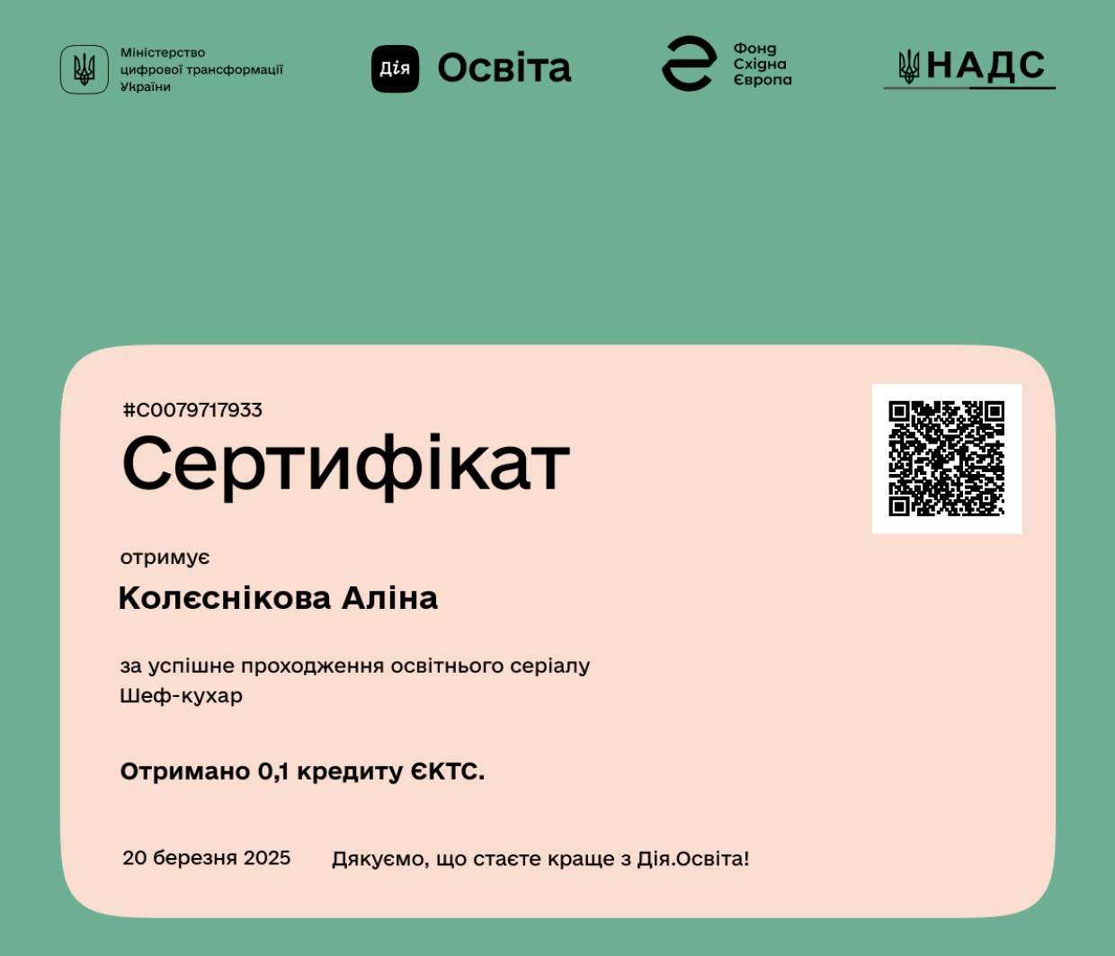 Колєснікова Аліна | ОК «Технологія харчової продукції в ресторанній індустрії» | Рішення комісії | |