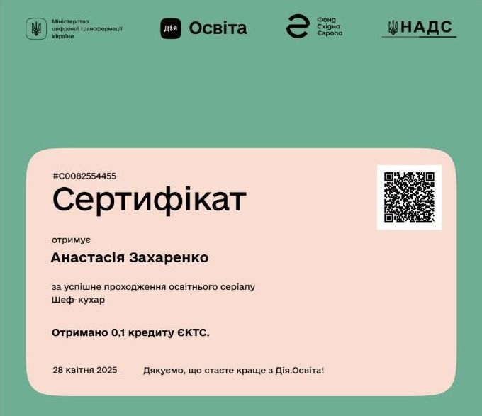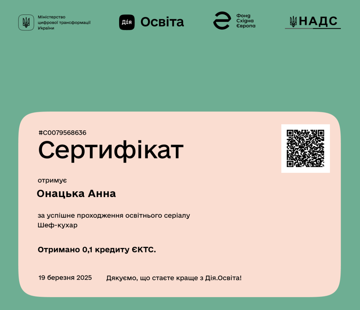 Онацька Анна | ОК «Технологія харчової продукції в ресторанній індустрії» | Рішення комісії | |