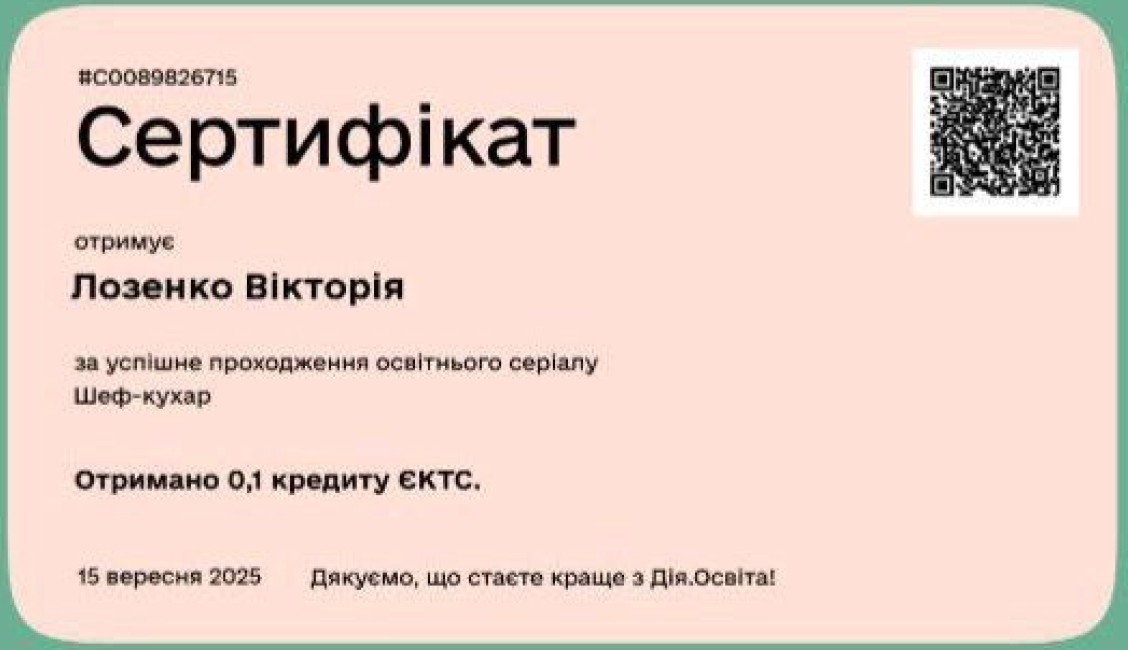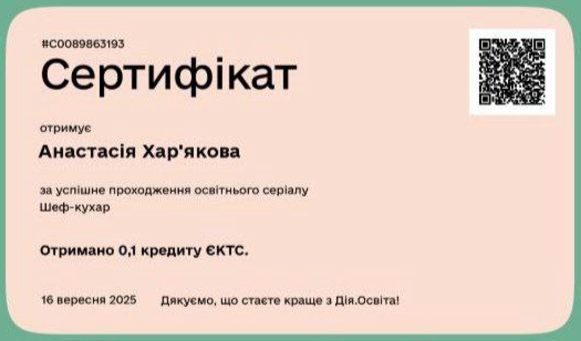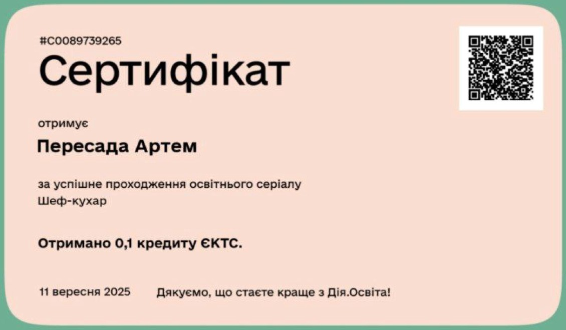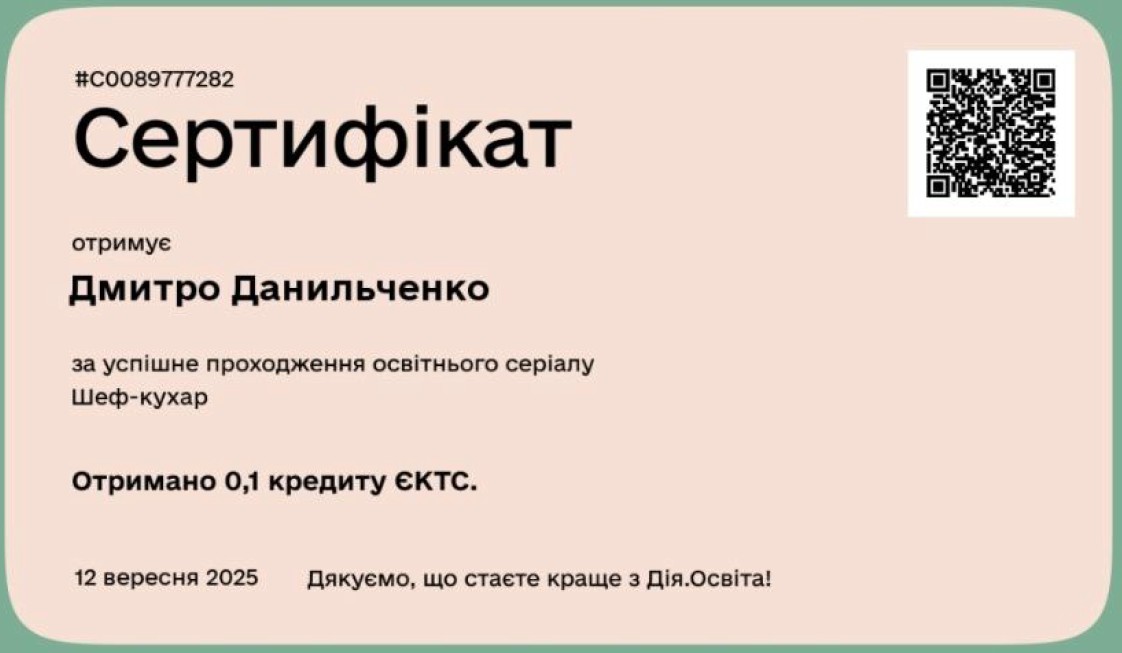Сертифікіт / Підтвердження |
