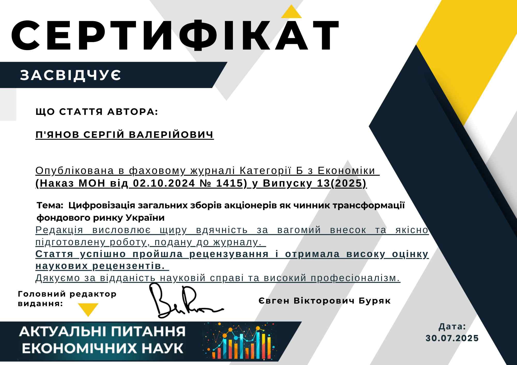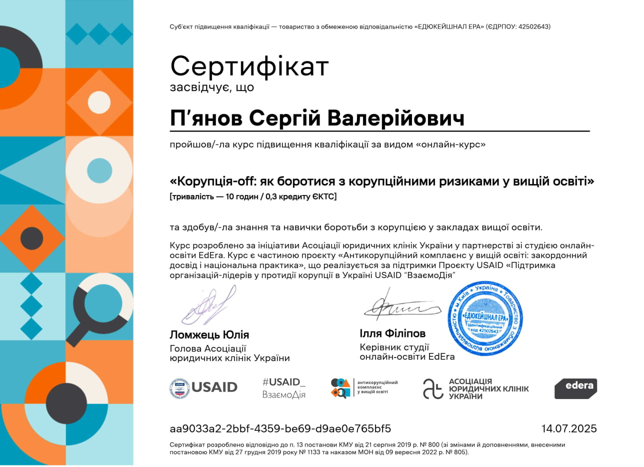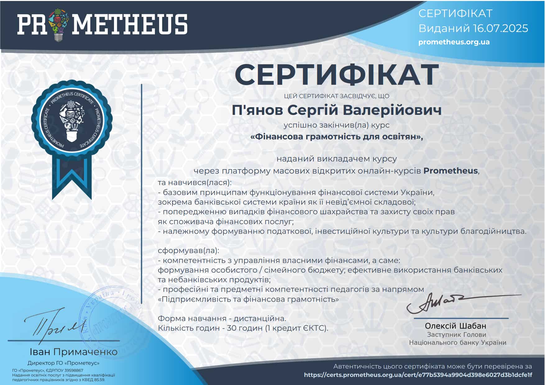- Освітньо-наукова програма “Фінанси, банківська справа та страхування”, 2025 рік