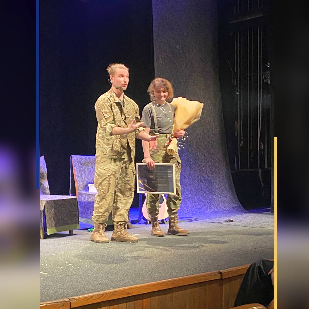 Після завершення неперевершено-емоційної гри акторів в.о. ректора ДБТУ Андрій Кудряшов звернувся до них і присутніх зі словами вдячності та підтримки. Від імені всього колективу університету він подякував акторам-військовим за їхню жертовну службу на культурному й бойовому фронтах. А також передав зібрані до Дня Збройних Сил України донати на підтримку наших захисників, які нині тримають оборону Харківщини.
