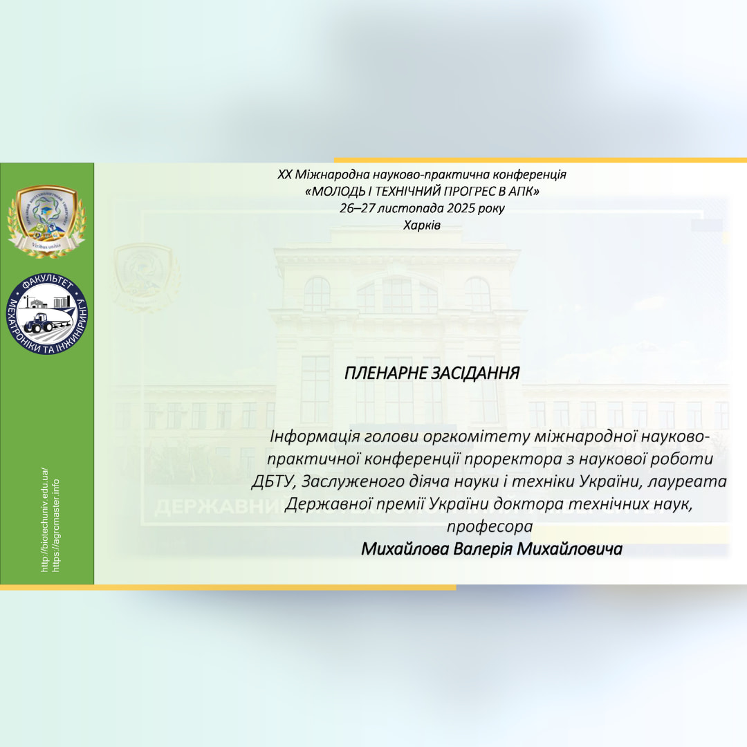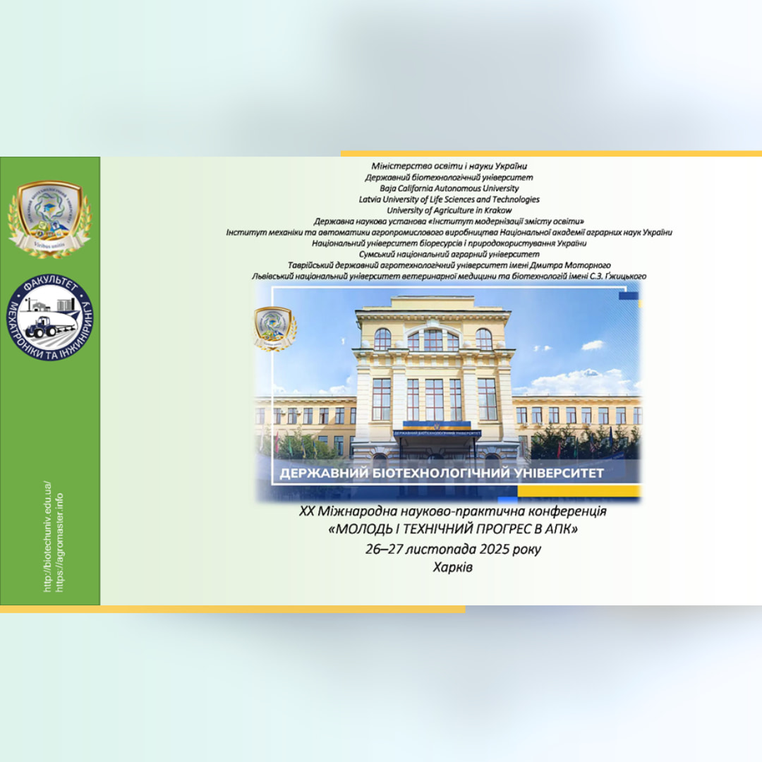 26–27 листопада 2025 року в Державному біотехнологічному університеті відбулася XX Міжнародна науково-практична конференція «Молодь і технічний прогрес в АПК». Захід став платформою для фахової дискусії та обміну науковими напрацюваннями між дослідниками різного рівня – від молодих учених до визнаних науковців із різних країн.