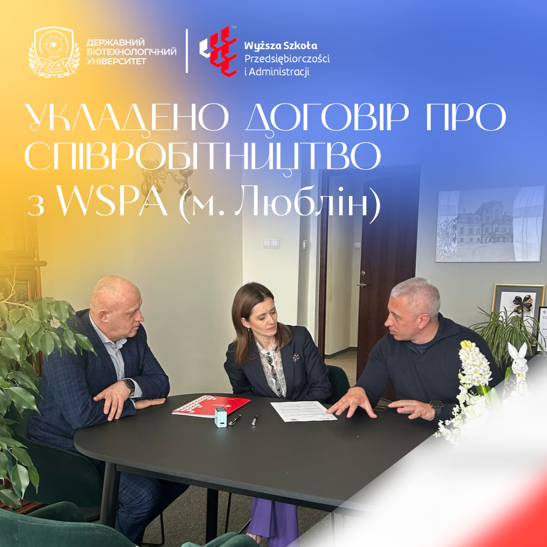 24 березня підписано договір про співробітництво з WSPA – University of Entrepreneurship and Administration in Lublin (м. Люблін, Республіка Польща). Укладений договір відкриває нові можливості для здобувачів, викладачів і науковців обох закладів.