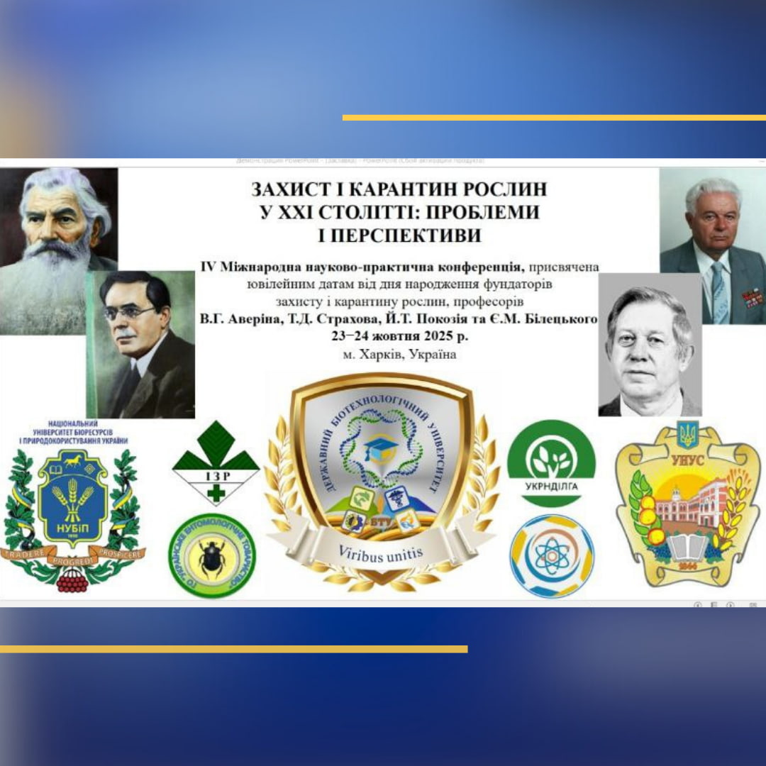 23–24 жовтня на факультеті агрономії та захисту рослин Державного біотехнологічного університету відбулася ІV Міжнародна науково-практична конференція «Захист і карантин рослин у ХХІ столітті: проблеми і перспективи», присвячена ювілейним датам від дня народження фундаторів захисту і карантину рослин, професорів В.Г. Аверіна, Т.Д. Страхова, Й.Т. Покозія та Є.М. Білецького.