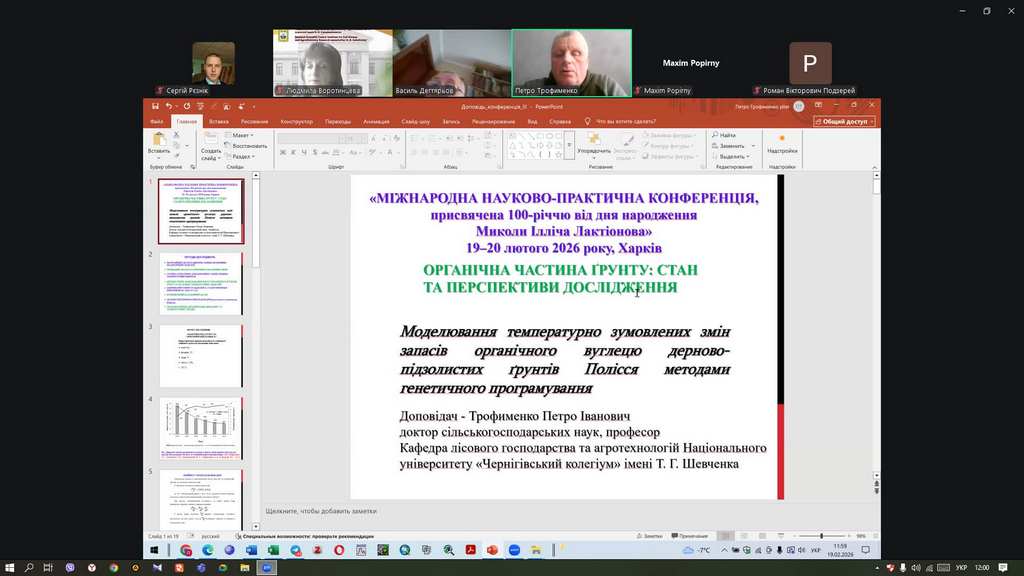 19-20 лютого 2026 року в стінах нашого славетного університету проходила Міжнародна науково-практична конференція «Органічна частина ґрунту: стан та перспективи дослідження», яка присвячена 100-річчю від дня народження доктора сільськогосподарських наук, професора нашого Університету Миколи Ілліча ЛАКТІОНОВА.