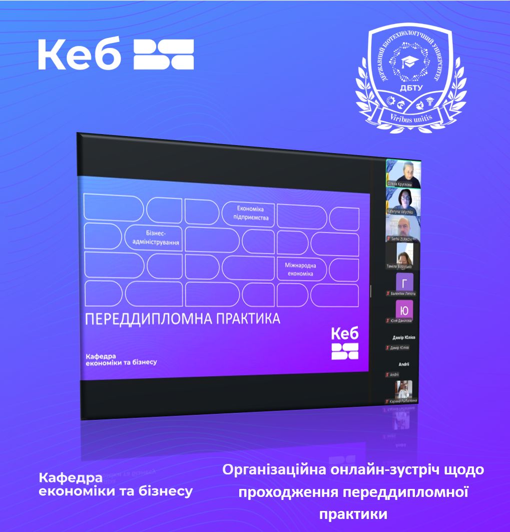 13 жовтня 2025 року відбулася організаційна онлайн-зустріч, присвячена питанням організації переддипломної практики здобувачів другого (магістерського) рівня вищої освіти денної та заочної форм навчання освітньо-професійних програм кафедри: «Економіка підприємства», «Бізнес-адміністрування», «Міжнародна економіка».