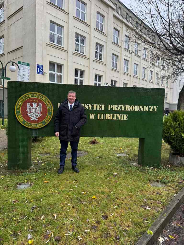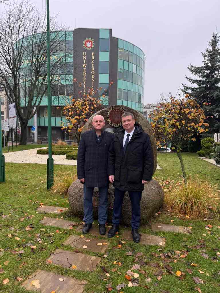 У рамках поглиблення міжнародного наукового партнерства 25 листопада 2025 року Кравцов Андрій Григорович, завідувач кафедри транспортних технологій і логістики Державного біотехнологічного університету, разом із завідувачем кафедри агроінженерії Іваном Галичем здійснив робочий візит до Республіки Польща.