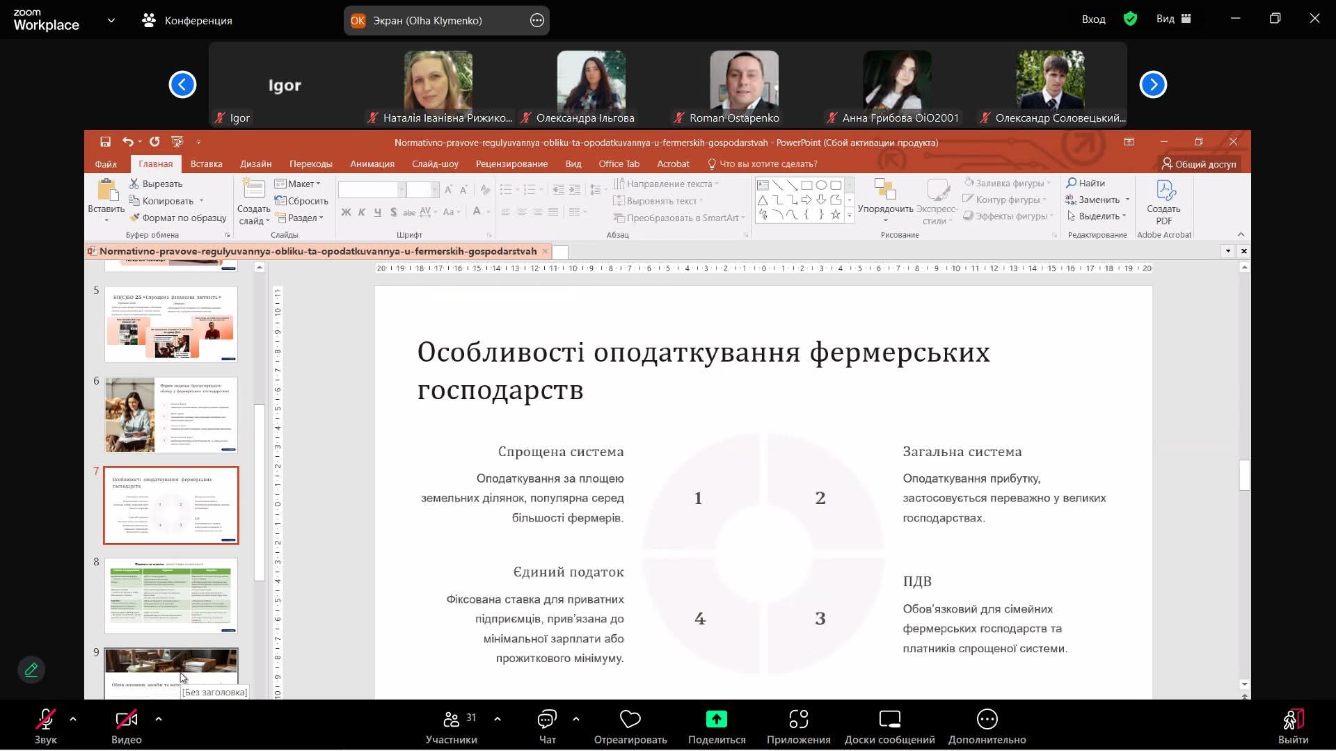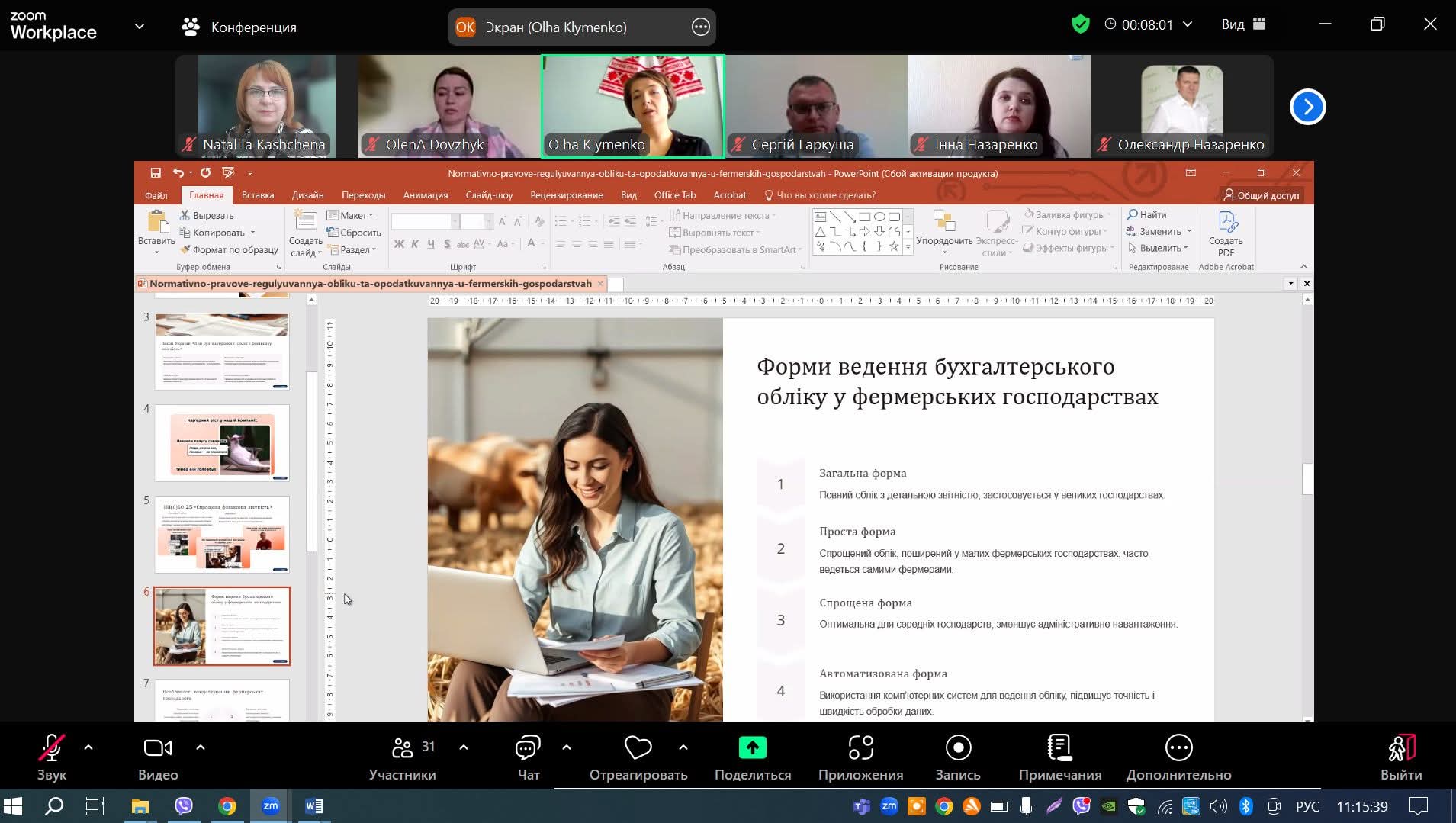 Спікером заходу була Ольга Клименко, головний бухгалтер фермерського господарства «Агро-Урожай». Зустріч стала важливим освітнім заходом, адже студенти отримали можливість поспілкуватися з практиком, який щодня працює з актуальними викликами аграрного бізнесу. Спікер детально розповіла про: