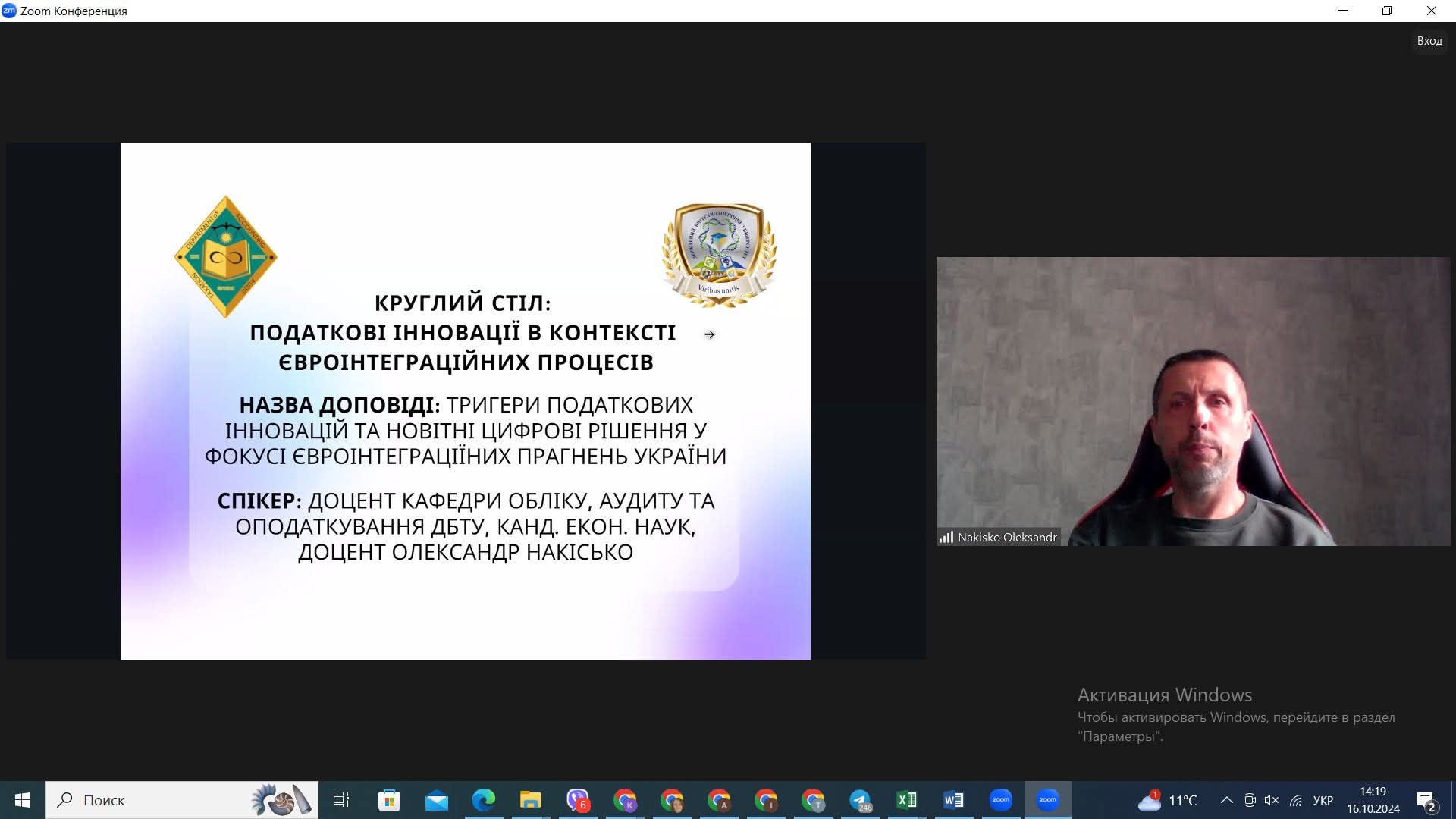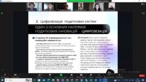 - Тригери податкових інновацій та новітні цифрові рішення у фокусі євроінтеграційних прагнень України (спікер: Накісько Олександр Вікторович, к.е.н., доцент кафедри обліку, аудиту та оподаткування Державного біотехнологічного університету);