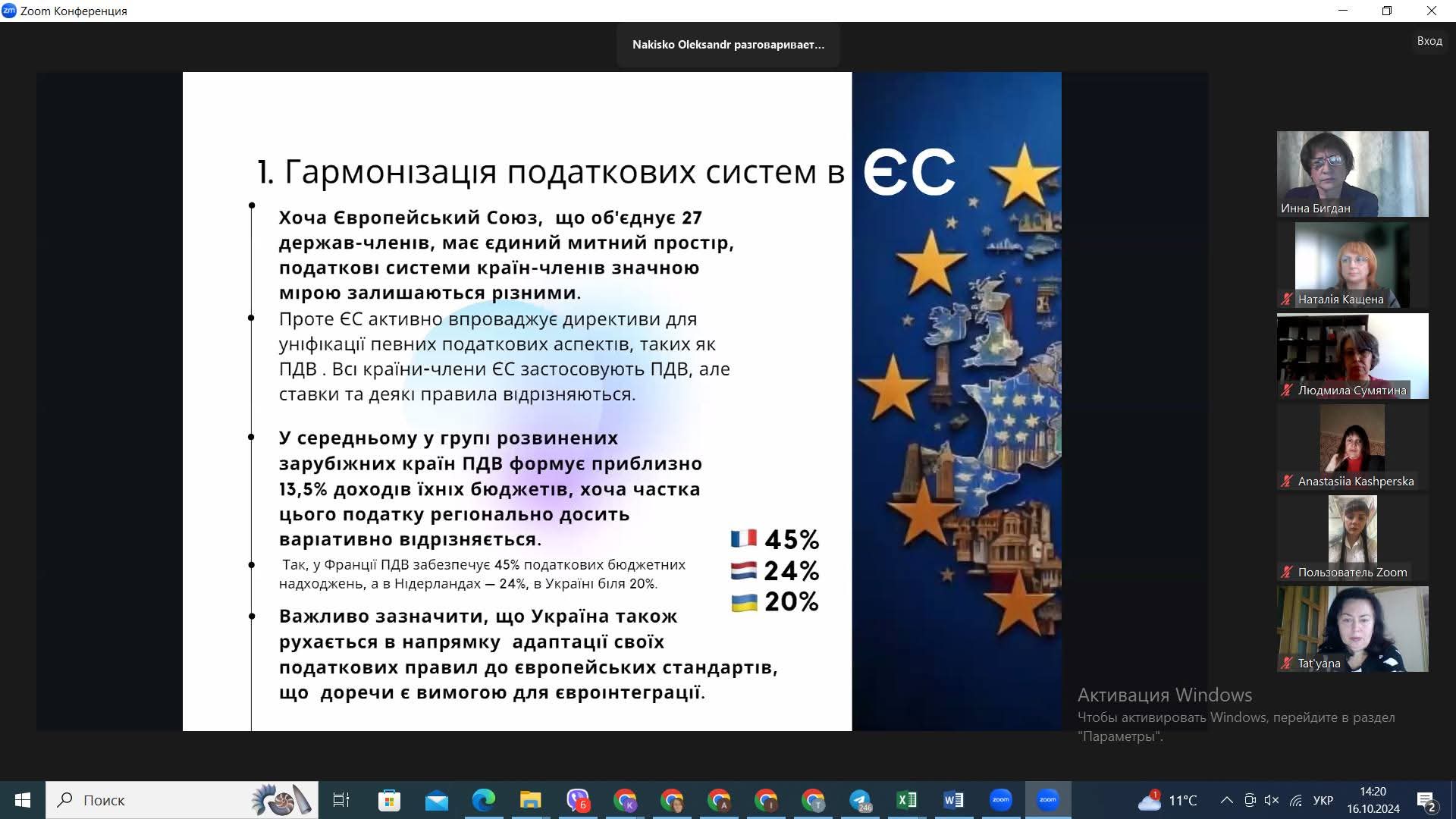 Захід розпочався зі вступного слова Кащеної Наталії Борисівни – завідувачки кафедри обліку, аудиту та оподаткування, д.е.н., професора, яка наголосила на важливості модернізації податкової системи у контексті євроінтеграції.