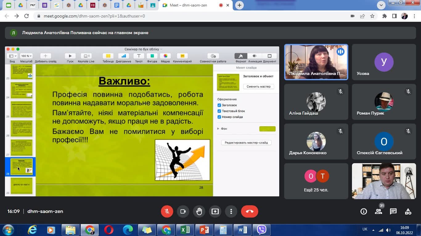 6 жовтня 2022 року викладачі кафедри обліку, аудиту та оподаткування провели перший профорієнтаційний семінар «Мій фах – бухгалтер» для учнів, їхніх батьків та вчителів закладів загальної середньої освіти м. Харкова та Харківської області.