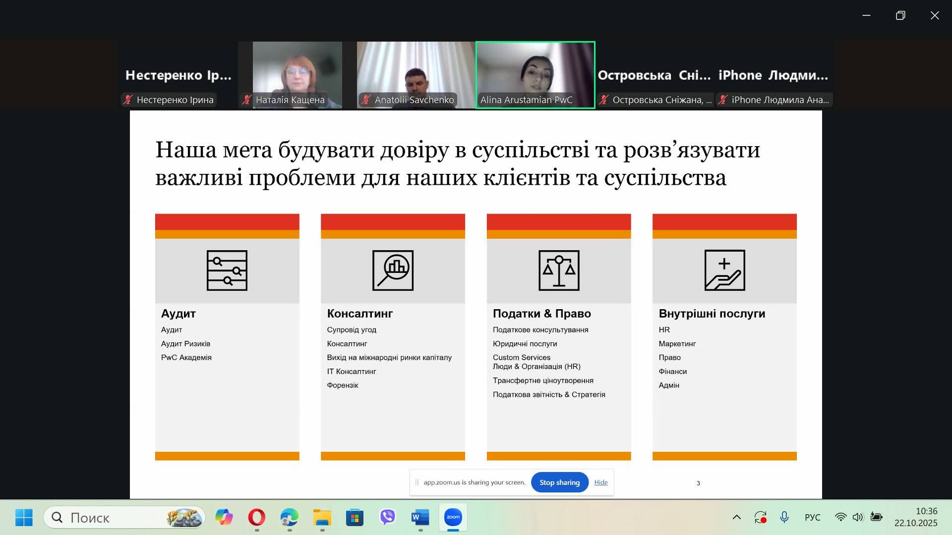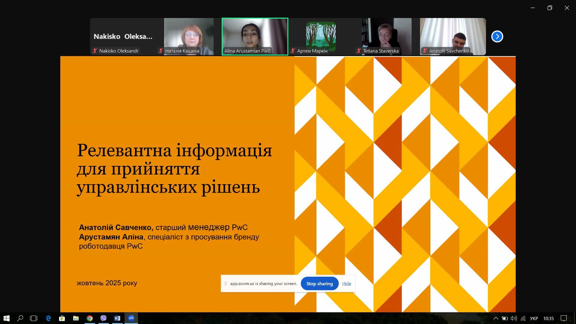 Кафедра обліку, аудиту та оподаткування висловлює щиру подяку компанії PwC Україна та спікерам за проведення змістовного й корисного заходу, а також дякує здобувачам за активність, зацікавленість і прагнення до професійного зростання.