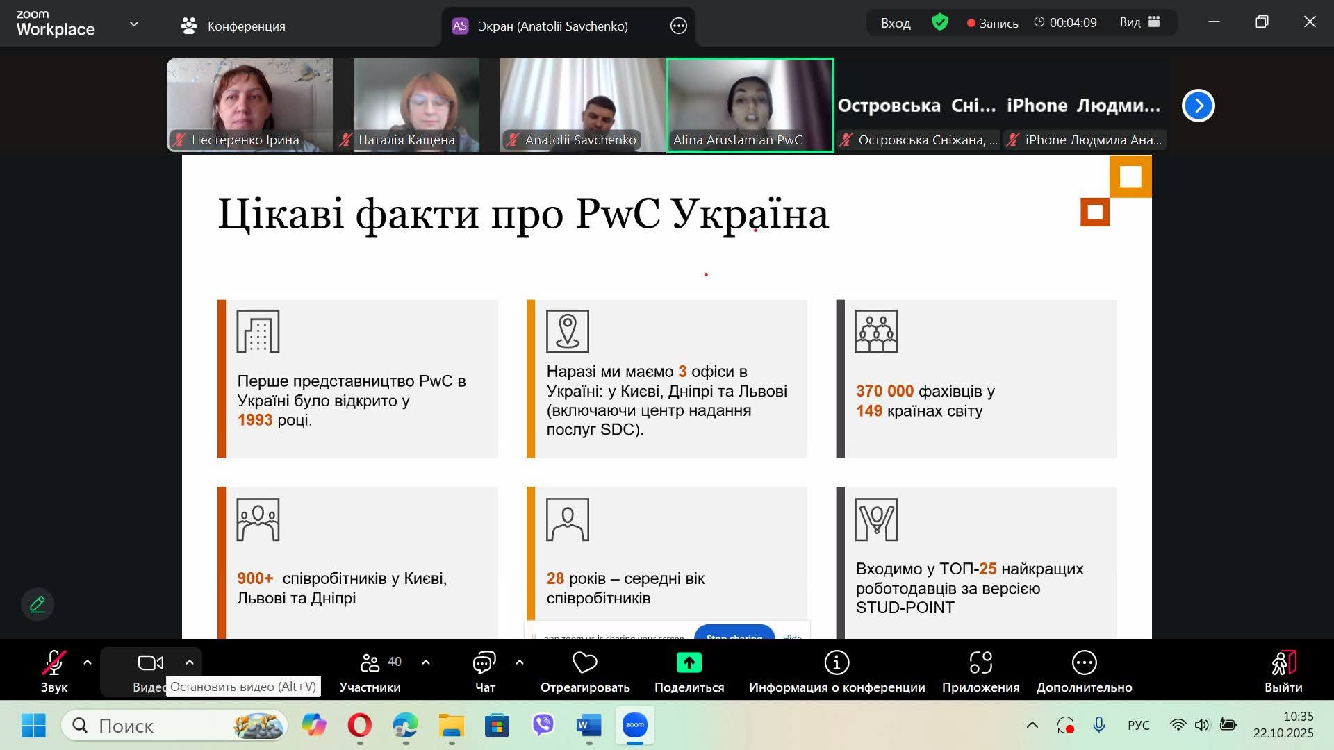 Учасники активно працювали з матеріалами, обговорювали можливі рішення та обмінювалися досвідом. Така співпраця з експертами PwC сприяє поглибленню практичних навичок здобувачів, розширює їх професійні можливості та підвищує конкурентоспроможність на сучасному ринку праці. Важливим елементом зустрічі стало те, що студентам було запропоновано можливості працевлаштування та стажування у компанії PwC, що відкриває додаткові перспективи для їхнього професійного розвитку.