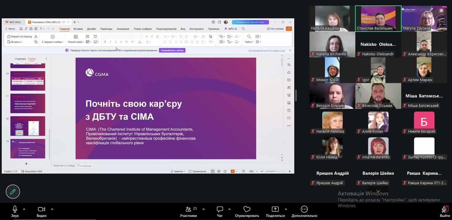 24 березня 2026 року здобувачі спеціальності «Облік і оподаткування» та викладачі кафедри обліку, аудиту та оподаткування Державного біотехнологічного університету взяли участь у презентаційній лекції «Спеціальні програми CIMA для акредитованих університетів».