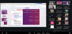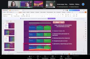 Спікеркою заходу виступила Марина Зайцева, координатор освітніх програм AICPA&CIMA в Україні, яка представила інформацію про спеціальні можливості для студентів закладів вищої освіти, акредитованих CIMA, особливості проходження професійної сертифікації, структуру програм, умови реєстрації, підготовки до іспитів та переваги здобуття міжнародно визнаної кваліфікації у сфері обліку, оподаткування та бізнес-аналітики.