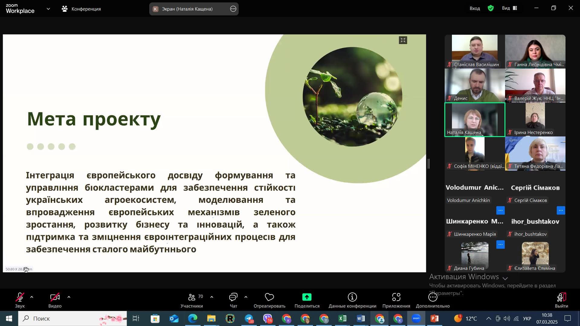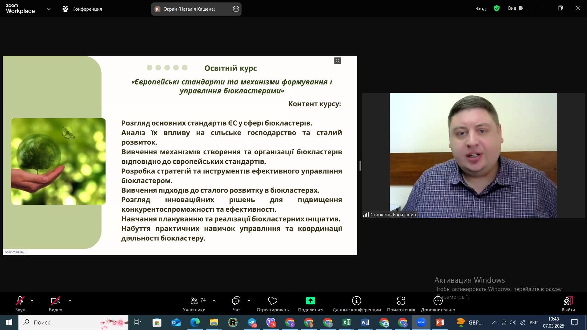 Учасникам було представлено ключові напрями реалізації проєкту, зокрема освітню та наукову складові. Координаторка проєкту Наталія Кащена акцентувала увагу присутніх на важливості вивчення регуляторної політики Європейського Союзу та адаптації європейського досвіду формування і управління біокластерами для забезпечення стійкості агроекосистем України.