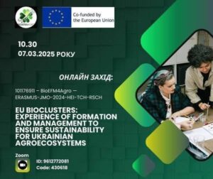 7 березня 2025 року в Державному біотехнологічному університеті відбулася презентація грантового проєкту «Біокластери ЄС: досвід формування та управління для забезпечення сталості українських агроекосистем» (BioEFM4Agro), що реалізується за фінансової підтримки Європейського Союзу в межах програми Erasmus+ (напрям Jean Monnet).