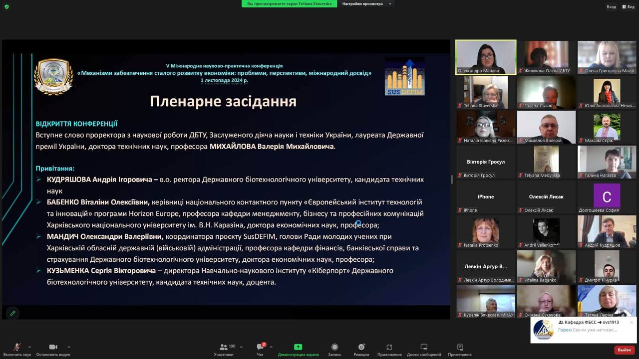 1 листопада 2024 року на базі Державного біологічного університету відбулася V Міжнародна науково-практична конференція «Механізми забезпечення сталого розвитку економіки: проблеми, перспективи, міжнародний досвід». Конференція проводилась в межах реалізації проєкту Erasmus+ Jean Monnet Module «Європейська архітектура сталого розвитку: механізми економічної та фінансової інтеграції» / «European Architecture of Sustainable Development: Economic and Financial Integration Mechanisms» (SusDEFIM, №101127849).