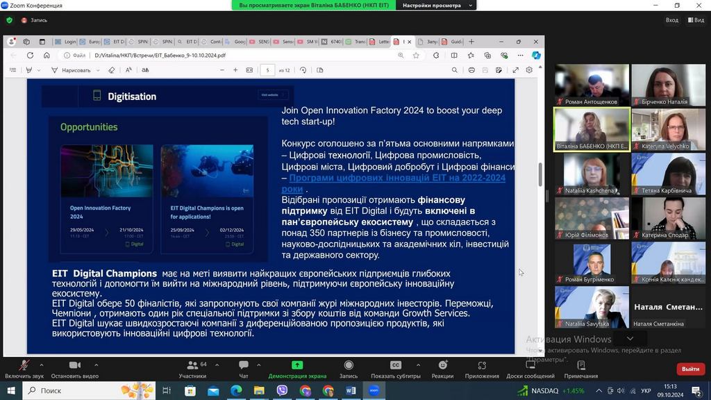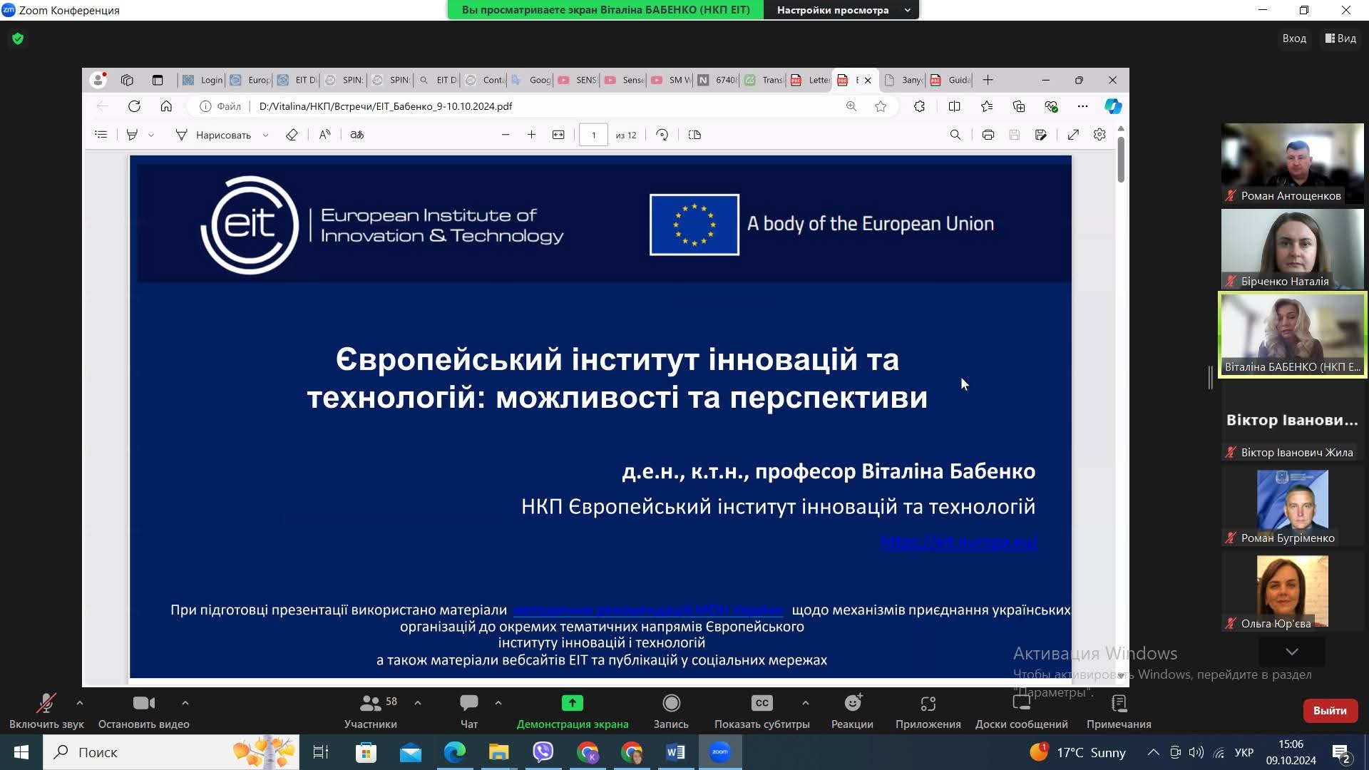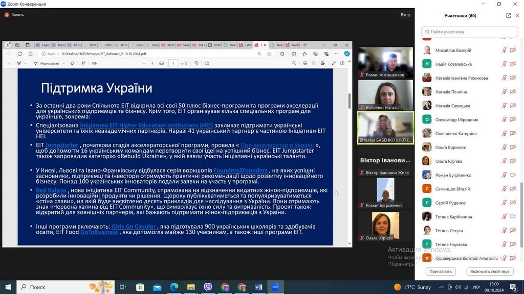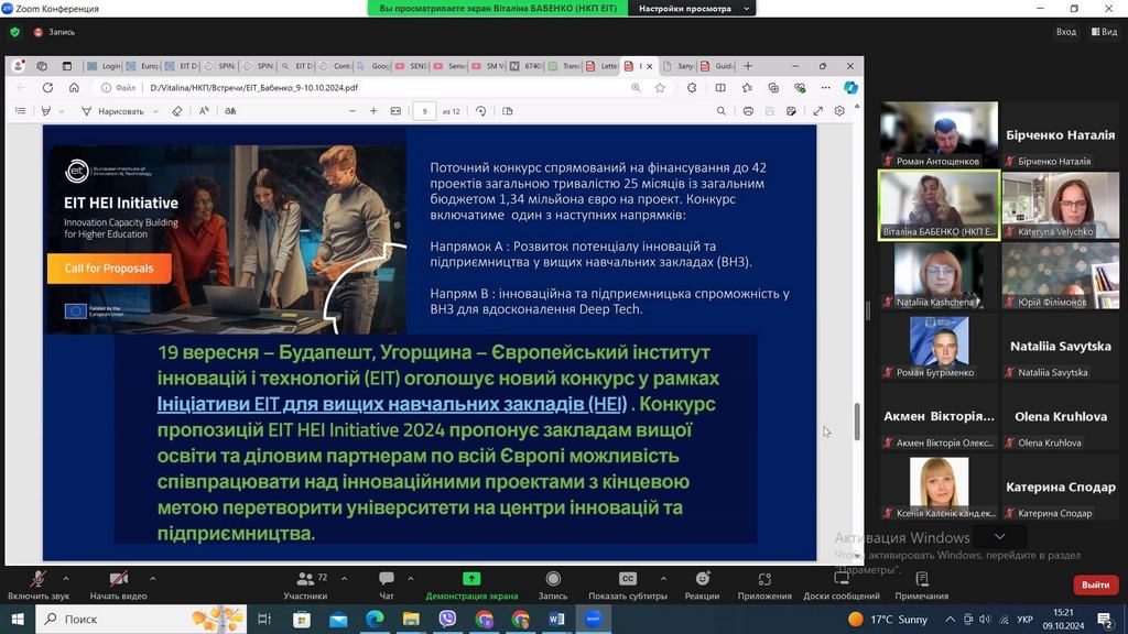 Зустріч з В. Бабенко, керівницею національного контактного пункту «Європейський інститут інновацій та технологій» програми Horizon Europe