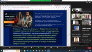 Захід було присвячено висвітленню можливостей та перспектив участі закладів вищої освіти у програмах і ініціативах ЄІТ як ключової європейської структури, діяльність якої спрямована на посилення інноваційного потенціалу Європи. У ході зустрічі учасники ознайомилися з організаційною структурою Європейського інституту інновацій та технологій, основними напрямами його діяльності, а також механізмами підготовки та подання грантових проєктів у межах програми Horizon Europe.