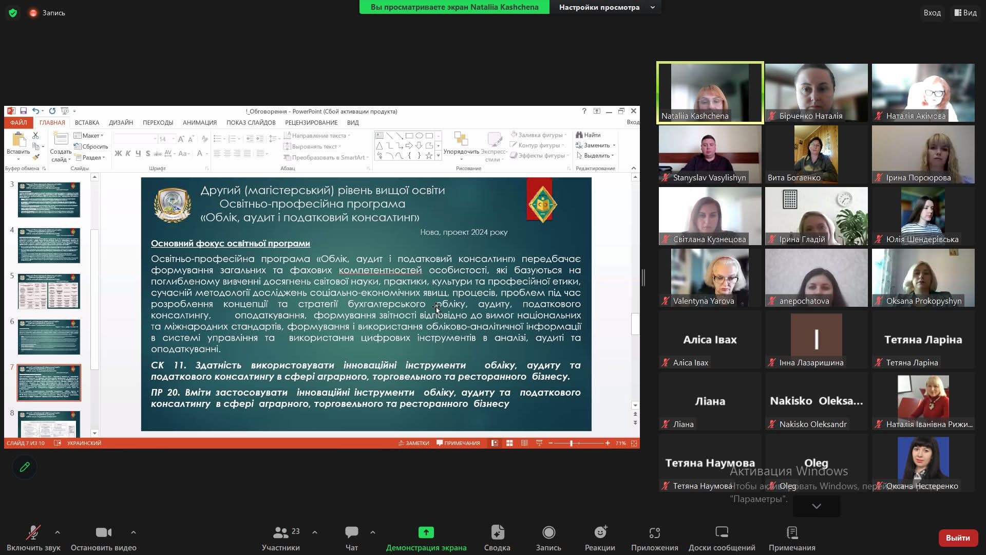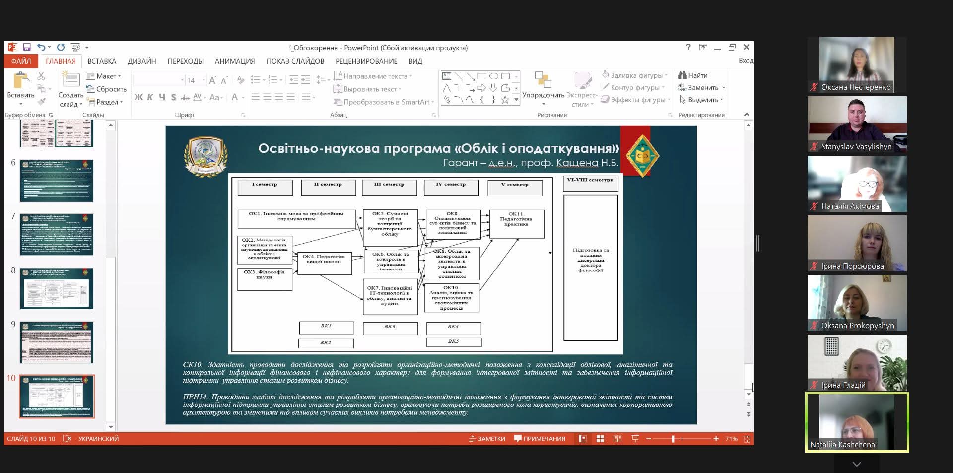 14 вересня 2023 року на кафедрі обліку, аудиту та оподаткування ДБТУ в дистанційному форматі було проведено організаційно-інформаційну зустріч зі здобувачами першого року навчання спеціальності 071 «Облік і оподаткування» початкового, першого (бакалаврського), другого (магістерського), третього (освітньо-наукового) рівнів вищої освіти за участю гарантів і членів проектних груп відповідних освітніх програм.