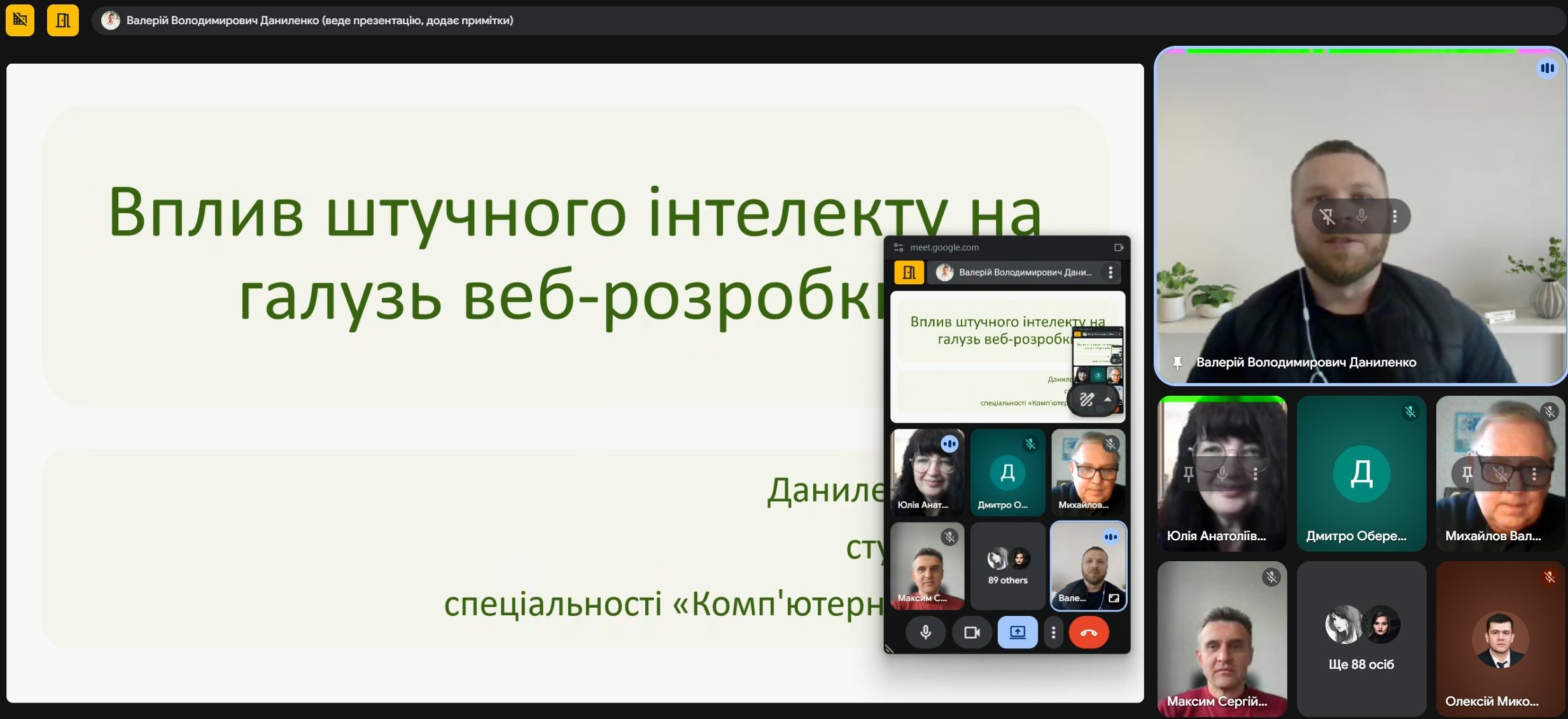 У рамках пленарного засідання було представлено низку актуальних наукових доповідей, присвячених сучасним викликам і тенденціям розвитку інформаційних технологій. Зокрема, розглядалися питання впливу штучного інтелекту на веброзробку, оптимізації енергетичних процесів, застосування алгоритмів машинного навчання в інтелектуальних системах, удосконалення технологій зберігання енергії, а також розроблення автоматизованих систем керування та методів забезпечення кібербезпеки.