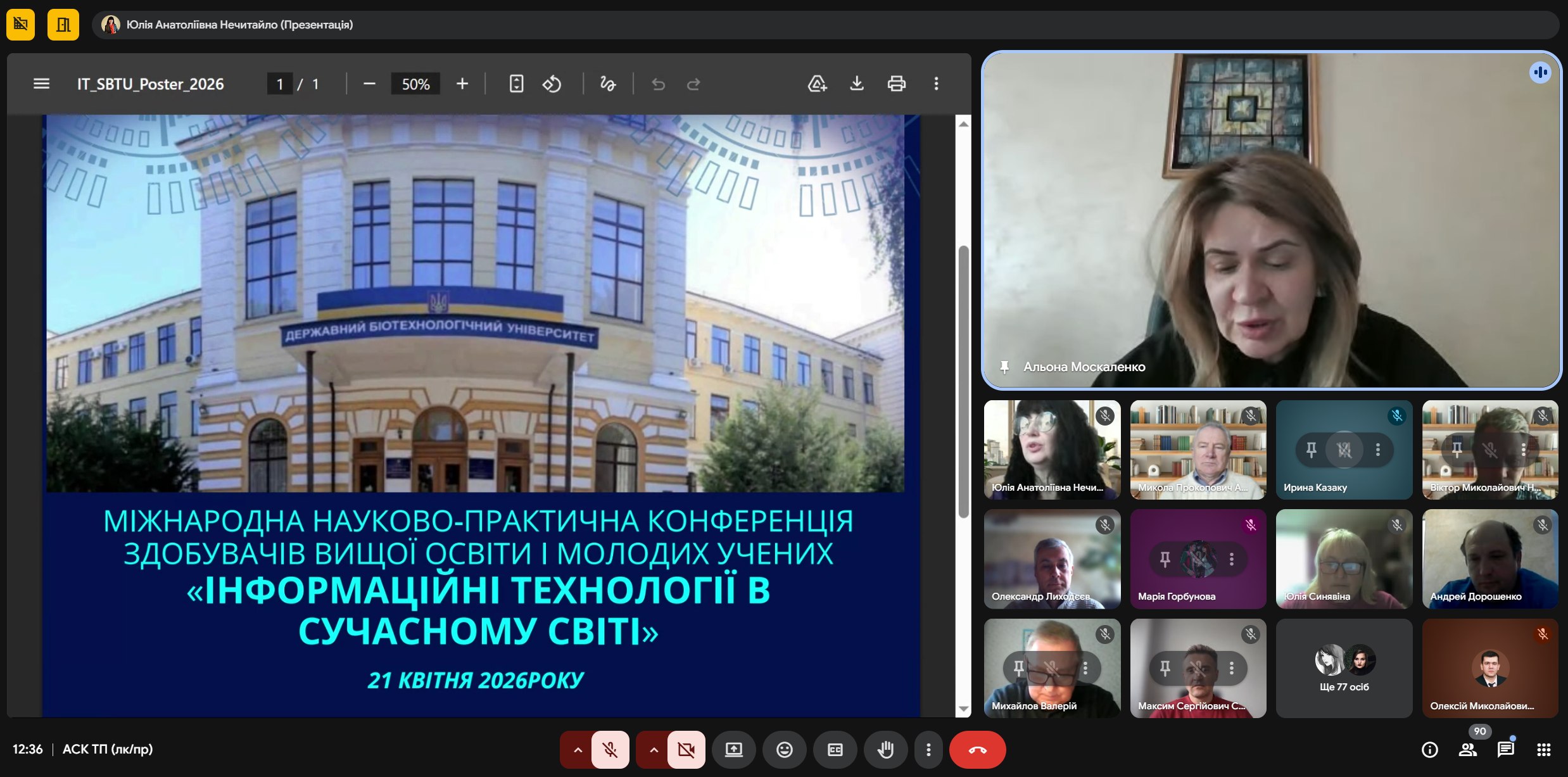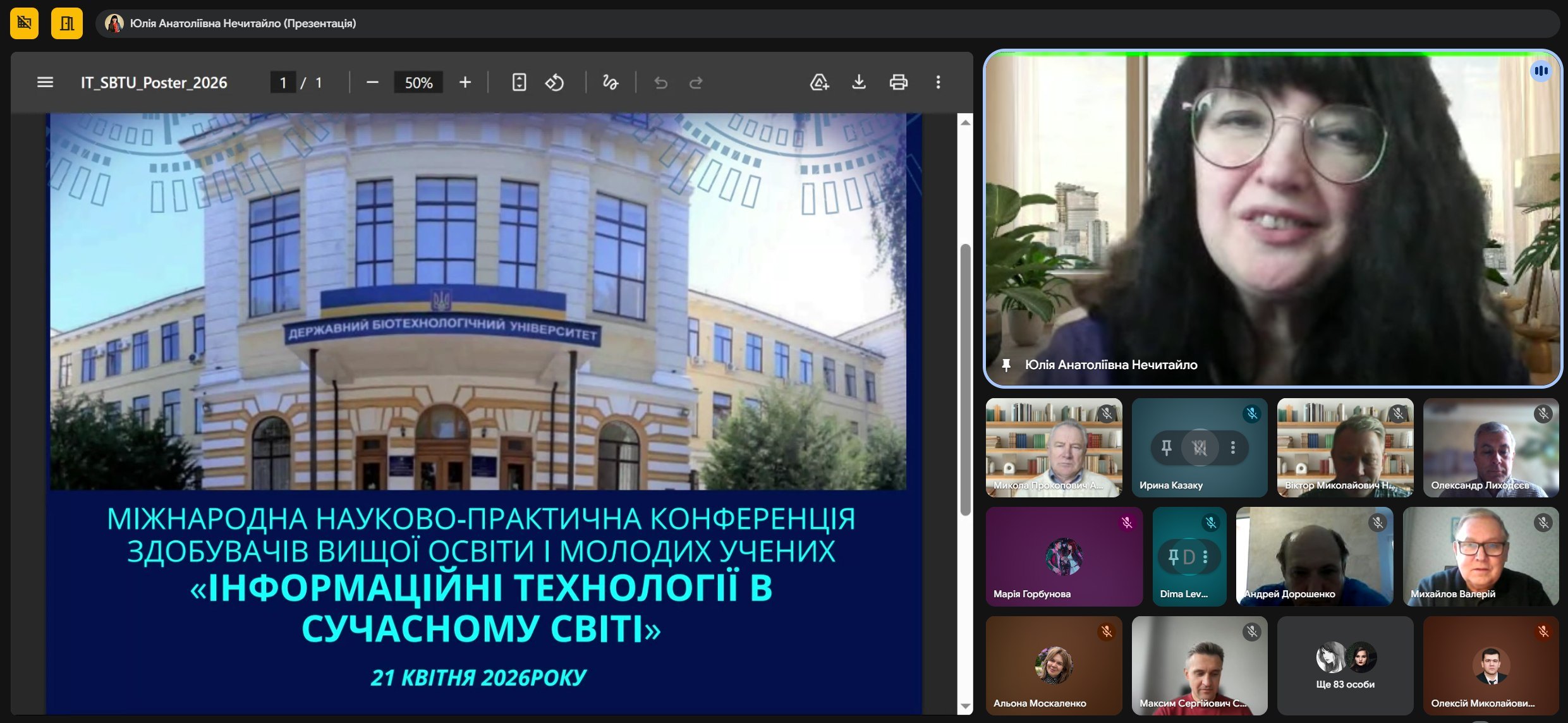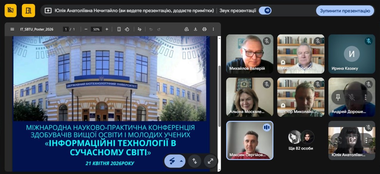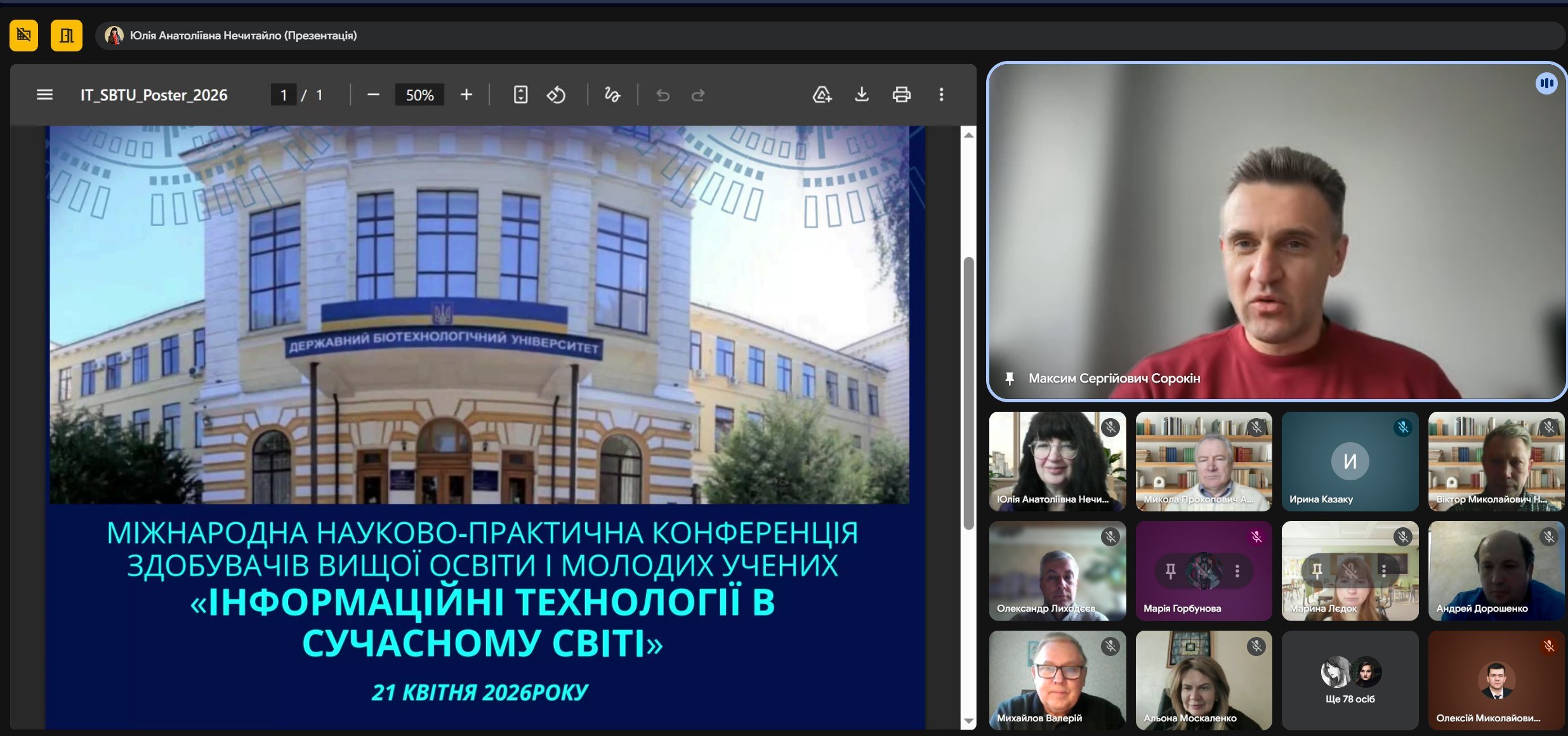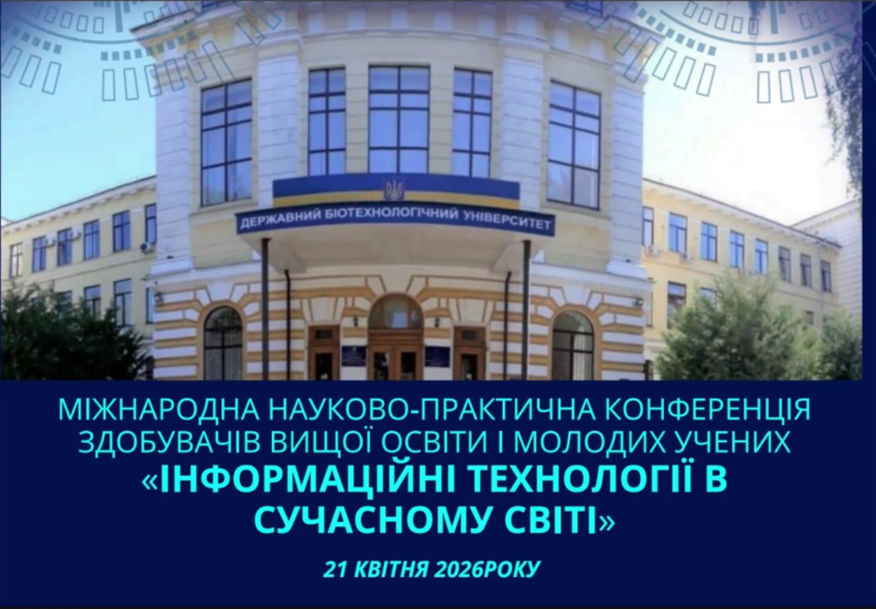 21 квітня 2026 року на базі Державний біотехнологічний університет відбулася Міжнародна науково-практична конференція здобувачів вищої освіти і молодих учених «Інформаційні технології в сучасному світі».