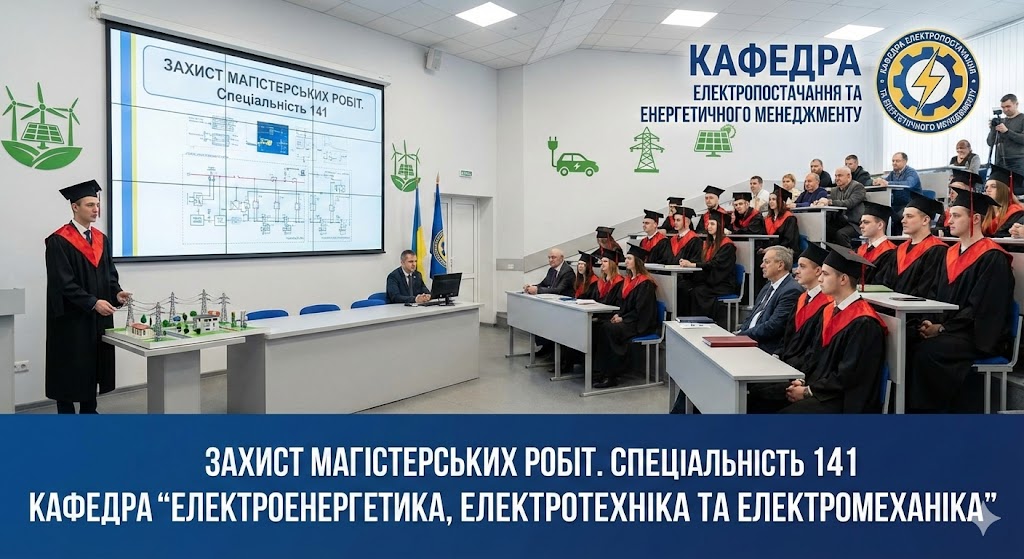 З 23 по 24 грудня 2025 року на кафедрі електропостачання та енергетичного менеджменту успішно пройшов захист магістерських кваліфікаційних робіт здобувачів другого (магістерського) рівня вищої освіти за спеціальністю 141 «Електроенергетика, електротехніка та електромеханіка».
