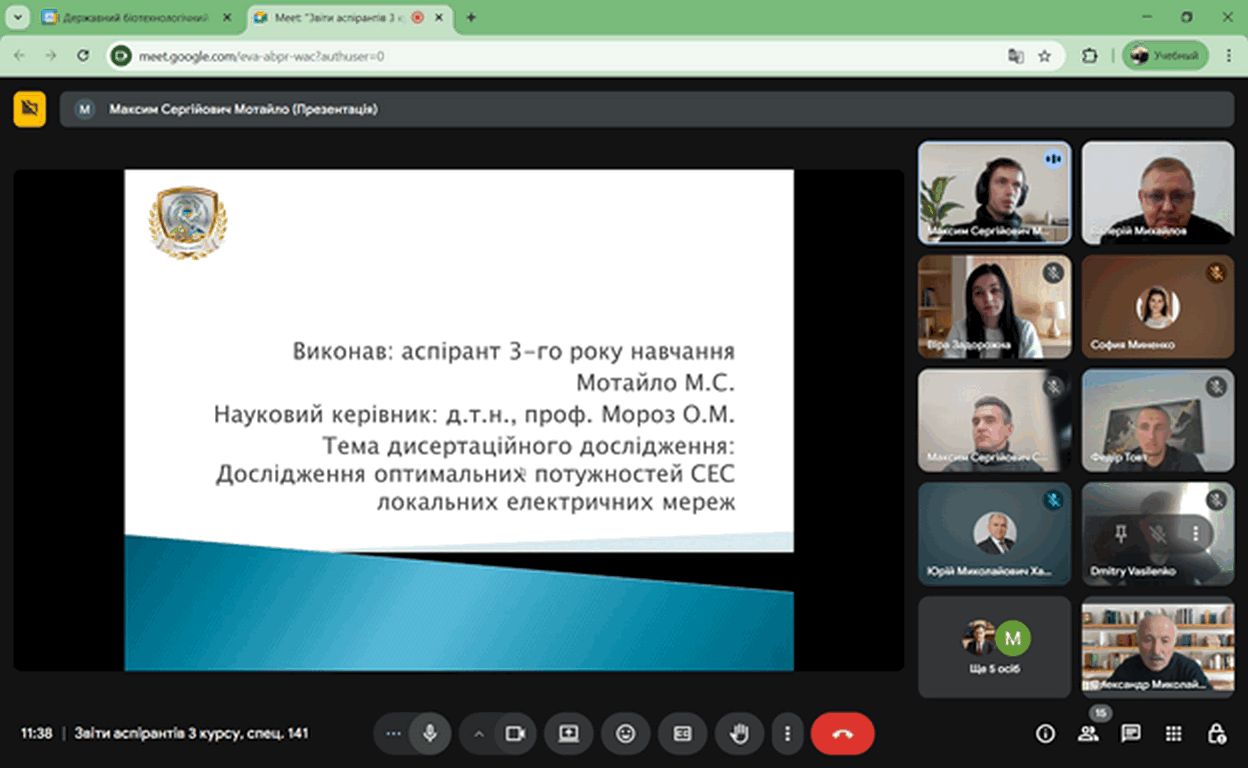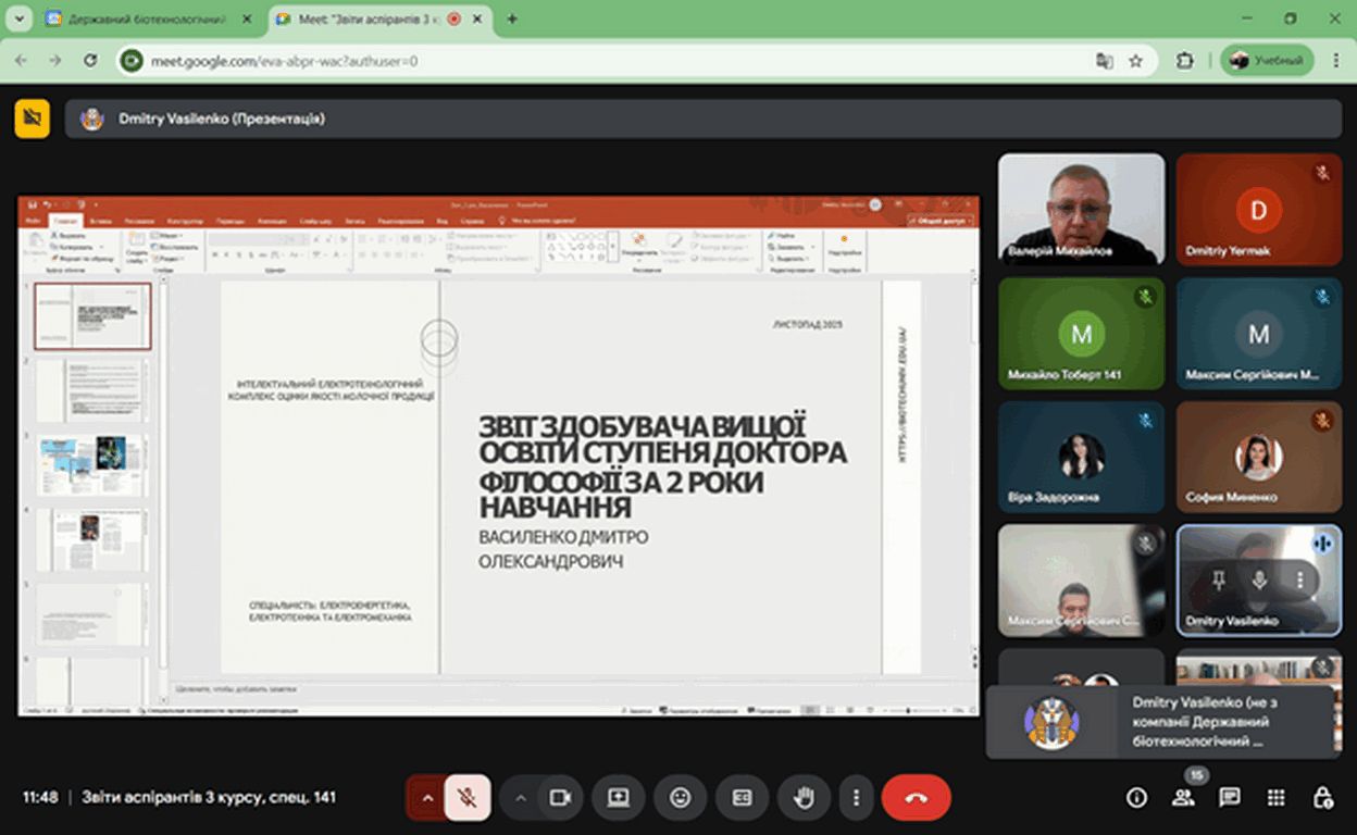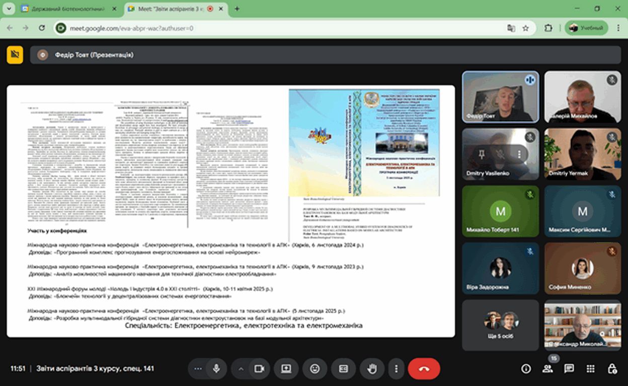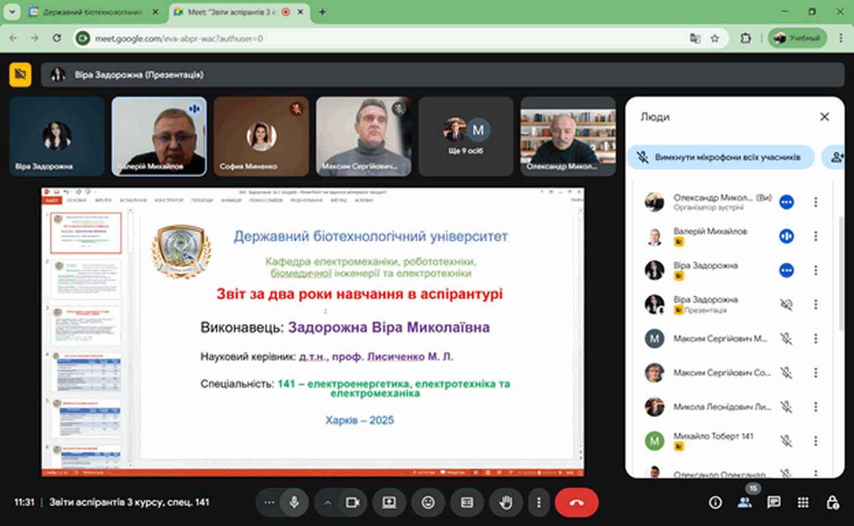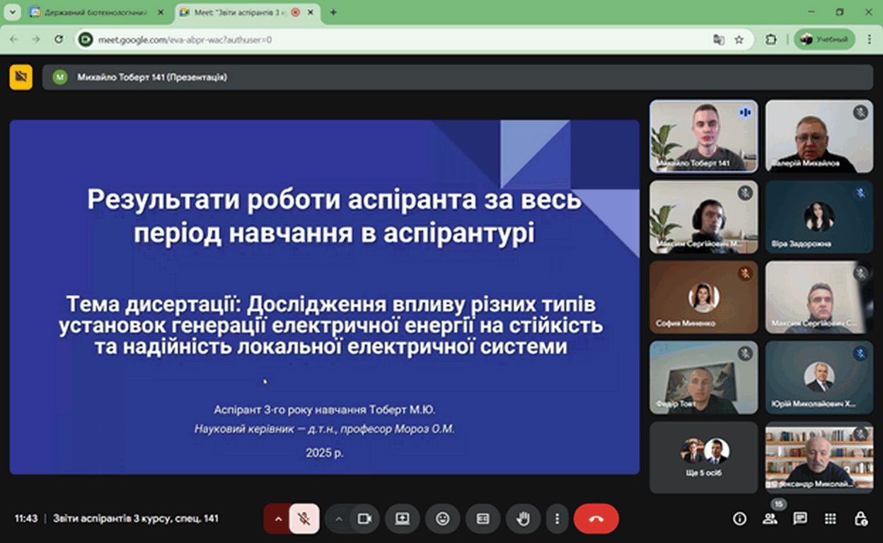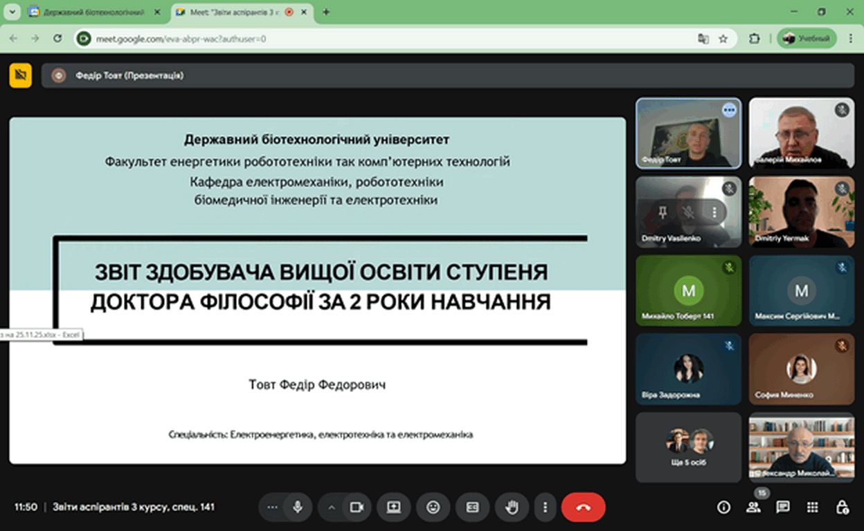 25 листопада 2025 року у Державному біотехнологічному університеті відбулося успішне звітування аспірантів 3-го року навчання зі спеціальності 141 «Електроенергетика, електротехніка та електромеханіка».