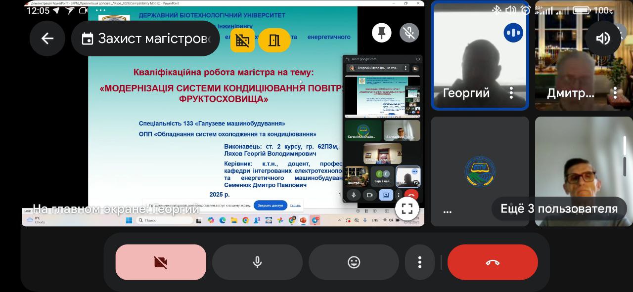 На кафедрі інтегрованих електротехнологій та енергетичного машинобудування відбулася знакова подія — успішний захист кваліфікаційних робіт здобувачів другого (магістерського) рівня вищої освіти. Цьогорічні випускники продемонстрували високий рівень підготовки, глибокі теоретичні знання та вміння розв’язувати складні інженерні завдання. Особливістю цього випуску став акцент на практичній спрямованості досліджень. Тематика робіт охоплювала найактуальніші питання галузі: Проєктування енергоефективних холодильних систем для логістичних центрів.