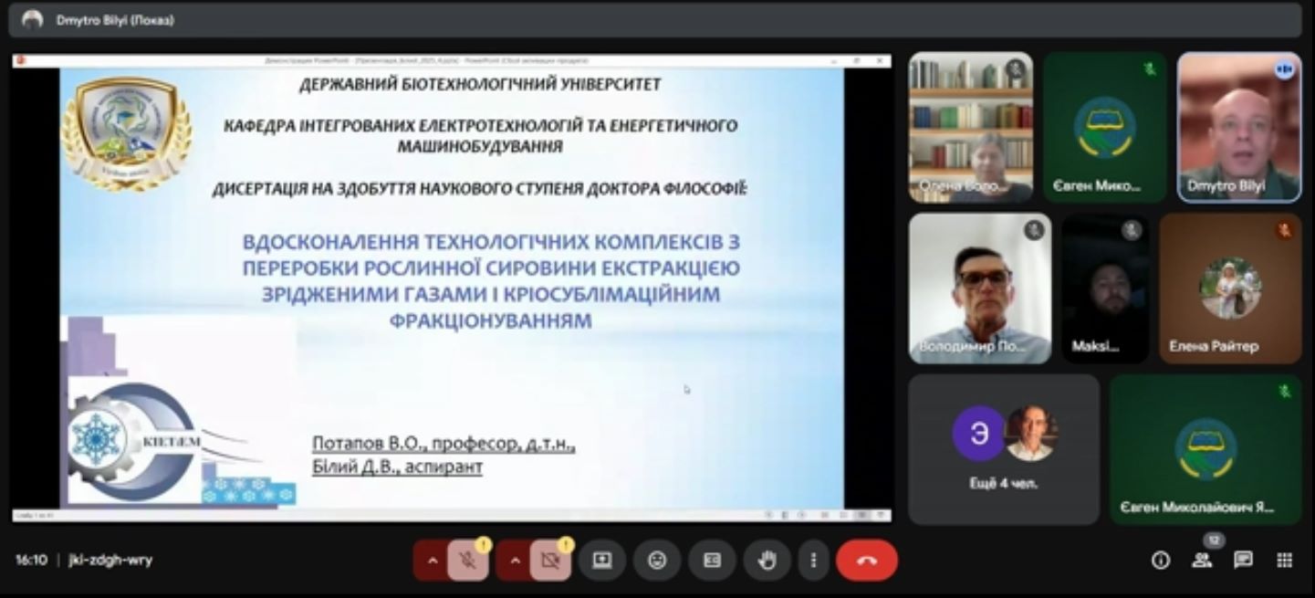 Під час семінару Дмитро Володимирович детально представив ключові теоретичні положення, методику та практичні результати свого дослідження, які мають значний потенціал для впровадження у харчовій промисловості. Особлива увага була приділена інноваційним підходам до використання зріджених газів, що дозволяє отримувати високоякісні екстракти та фракції з цінної рослинної сировини зі збереженням її корисних властивостей.