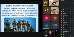 Нечитайло Ю.А. відкрила захід, нагадавши учням, що 6 грудня в Україні щороку відзначається День Збройних Сил України — державне свято, встановлене на честь ухвалення у 1991 році Закону України «Про Збройні Сили України». Здобувачі ознайомилися з історичними передумовами створення української армії, її значенням у період становлення незалежної держави та визначальною роллю у збереженні суверенітету України сьогодні. Наголошувалося, що у 2022–2024 роках, у період активних бойових дій проти російської агресії, це свято набуло особливої символічної сили, адже саме українські військові щоденно забезпечують обороноздатність держави та наближають нашу спільну перемогу.