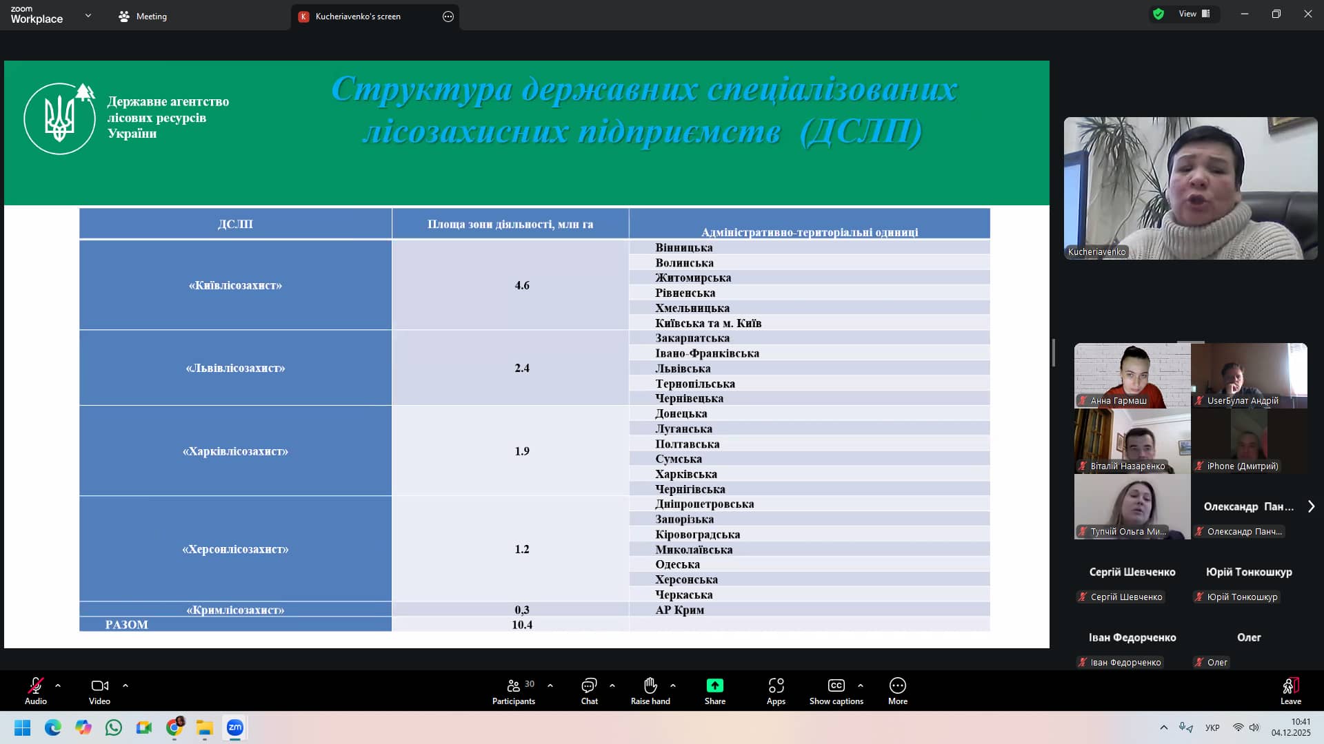 04 грудня 2025 р. на кафедрі лісових культур, меліорацій та садово-паркового господарства відбулася гостьова лекція за участі головного спеціаліста Відділу охорони і захисту лісів Державного агентства лісових ресурсів України Кучерявенко Тетяни Вікторівни за темою: «Особливості роботи служби лісозахисту України».