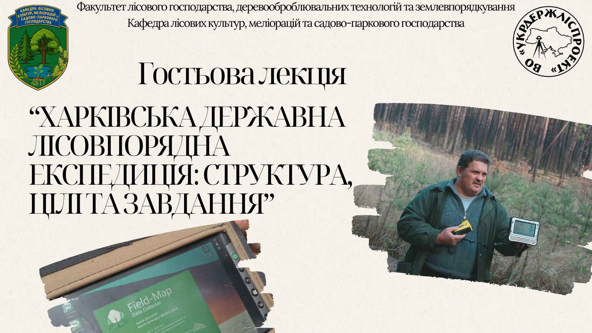 9 квітня 2026 року на кафедрі лісових культур, меліорацій та садово-паркового господарства відбулася гостьова лекція на тему: «Харківська державна лісовпорядна експедиція: структура, цілі та завдання».