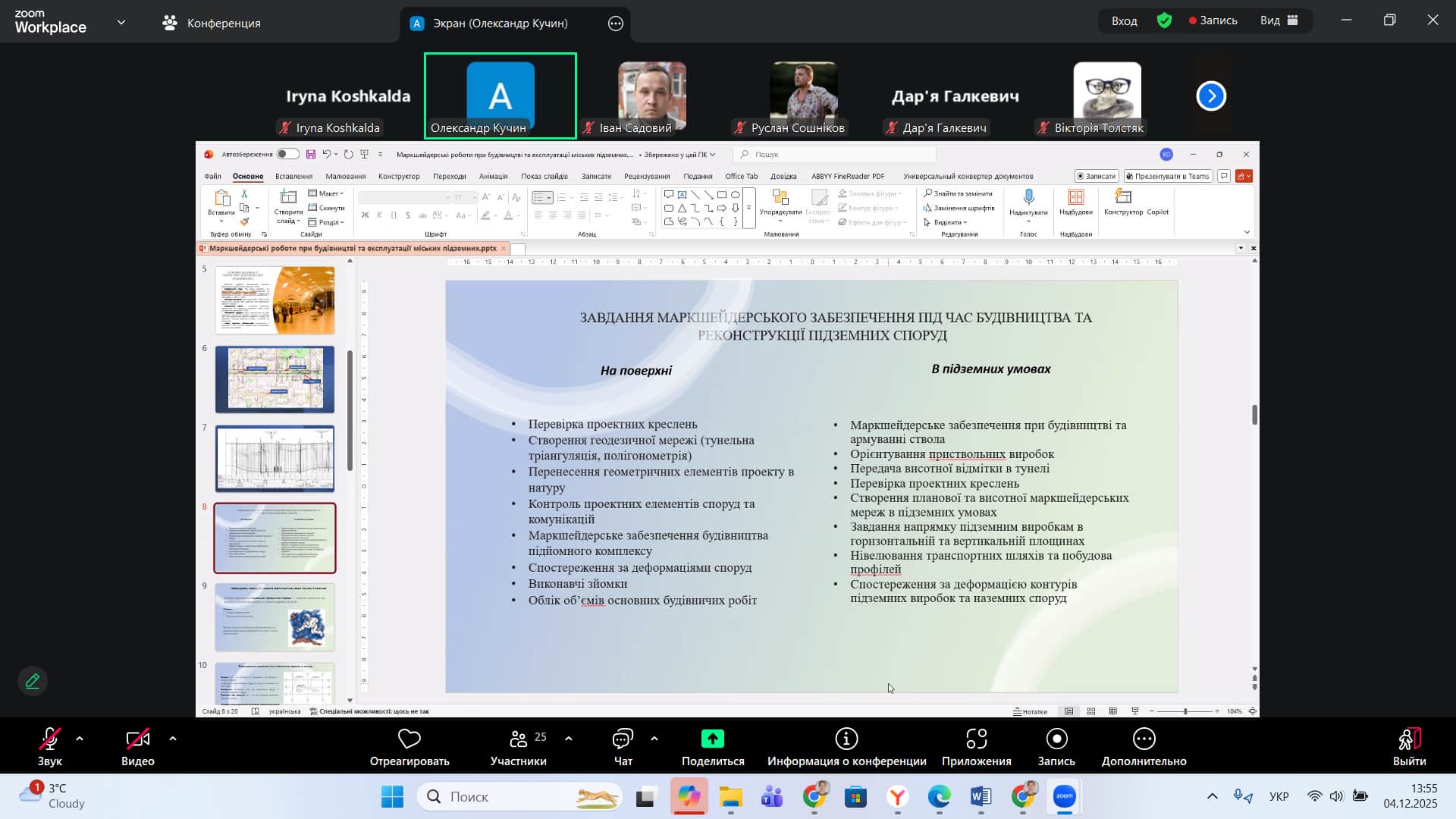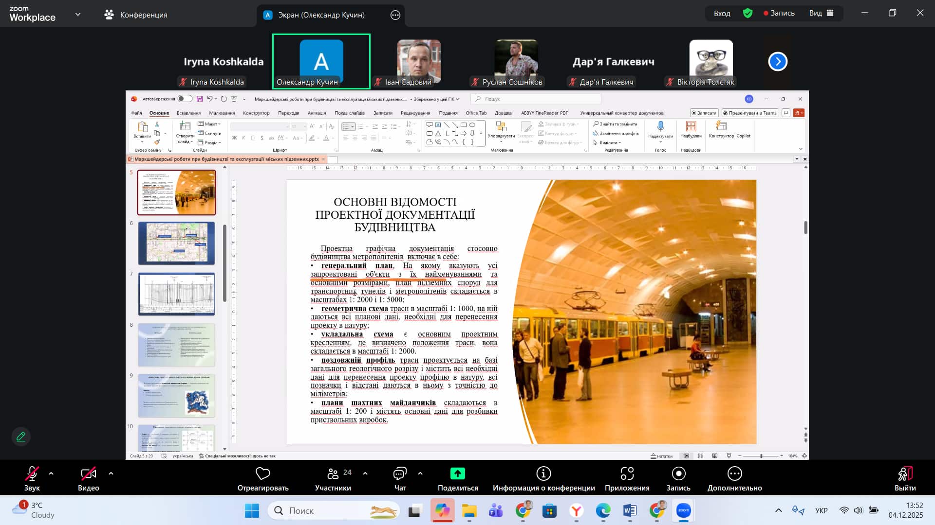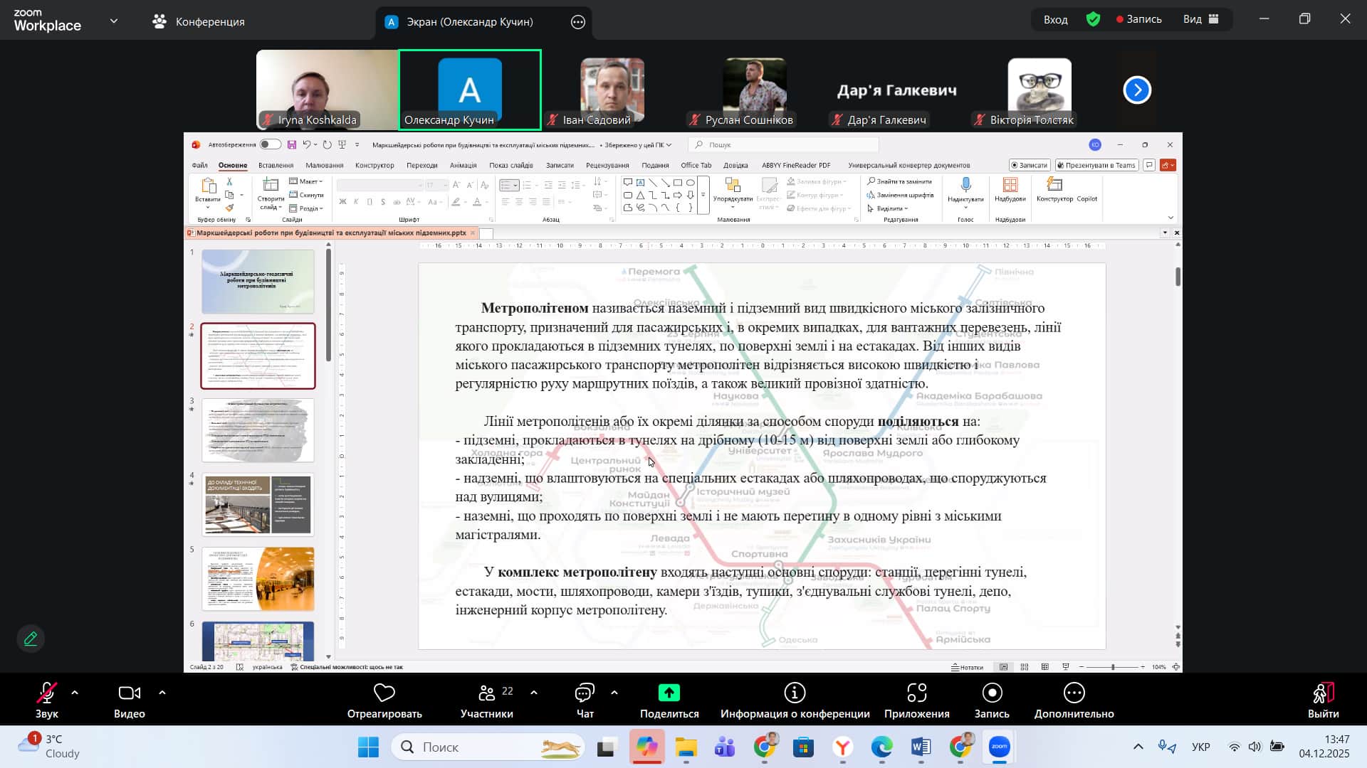 4 грудня 2025 року здобувачі спеціальності «Геодезія та землеустрій» спільно з викладачами кафедри управління земельними ресурсами, геодезії та кадастру Державного біотехнологічного університету взяли участь у гостьовій лекції на тему: «Маркшейдерсько-геодезичні роботи при будівництві метрополітенів».