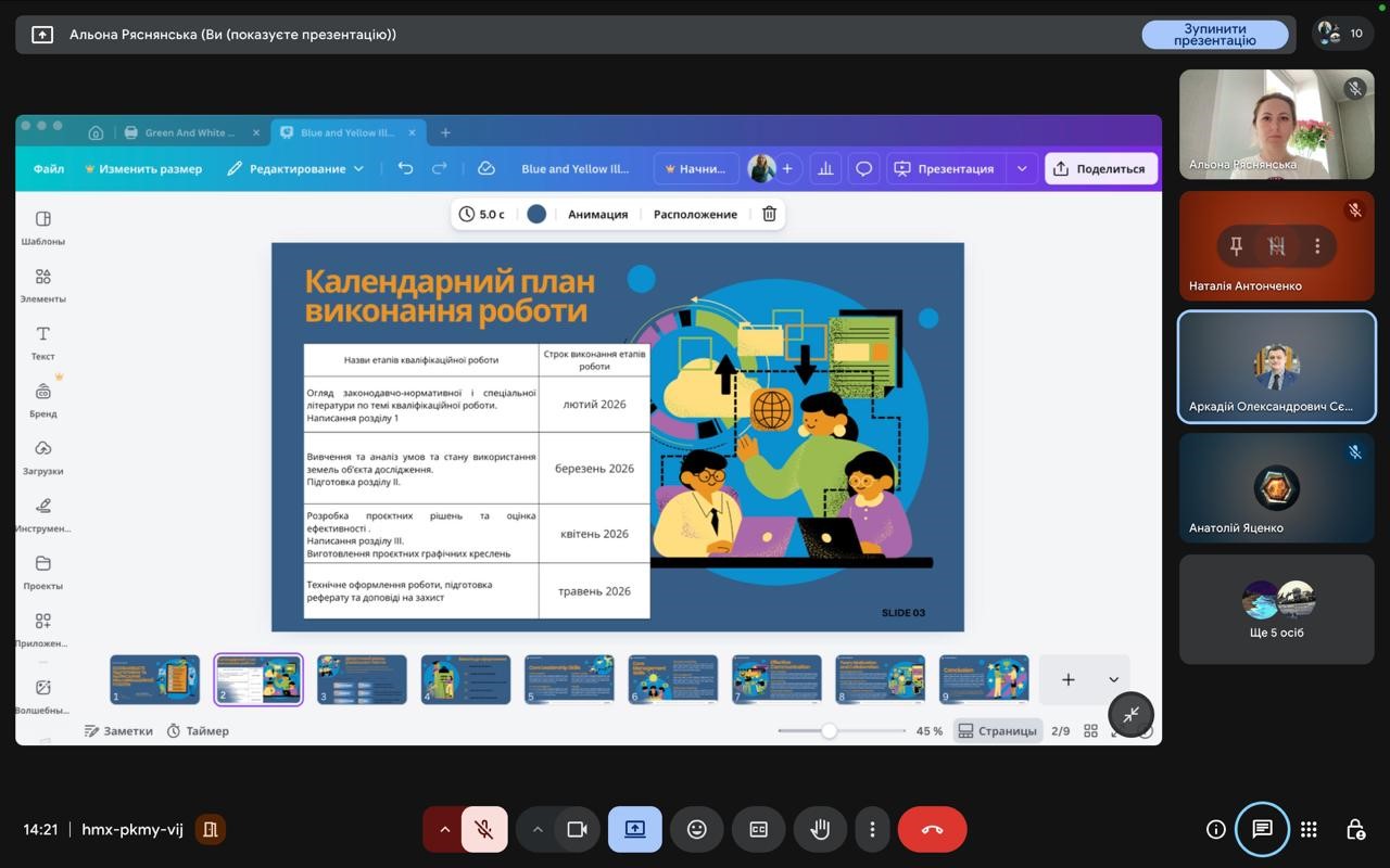 Для здобувачів 4 курсу спеціальності 193 «Геодезія та землеустрій» відбулась кураторська година на тему «Особливості підготовки та написання кваліфікаційної роботи». Захід провели куратори академічних груп Ряснянська Альона Миколаївна та Сєдов Аркадій Олександрович.