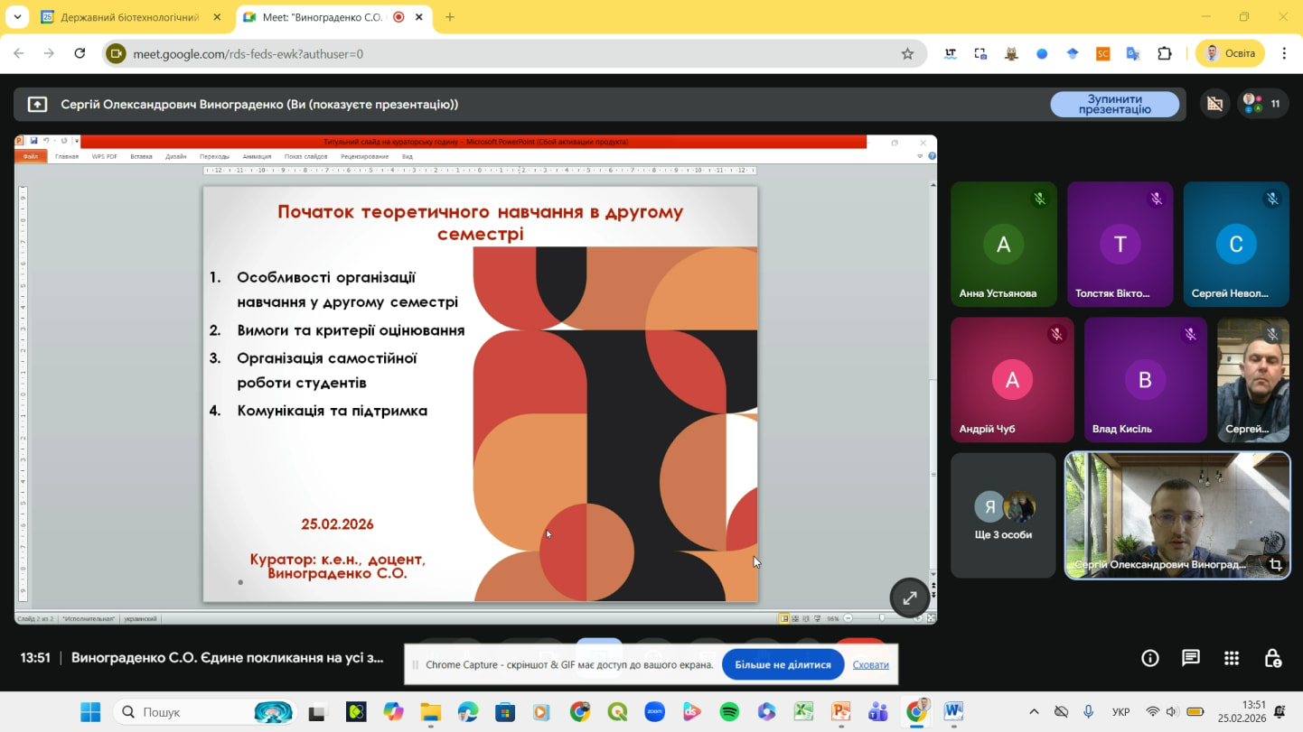 25 лютого 2026 року в навчальній групі 193-24б-01 спеціальності 193 «Геодезія та землеустрій» відбулася кураторська година на тему «Початок теоретичного навчання в другому семестрі 2025–2026 навчального року».