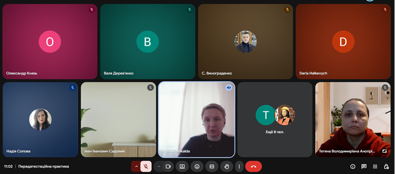 На початку передатестаційної практики здобувачі зустрілися з гарантами освітніх програм Кошкалдою Іриною Віталіївною та Анопрієнко Тетяною Володимирівною, а також керівниками практик. Окремо приділено увагу дотриманню техніки безпеки та виробничої дисципліни під час проходження практики, набуття відповідних компетентностей, програмних результатів тощо.