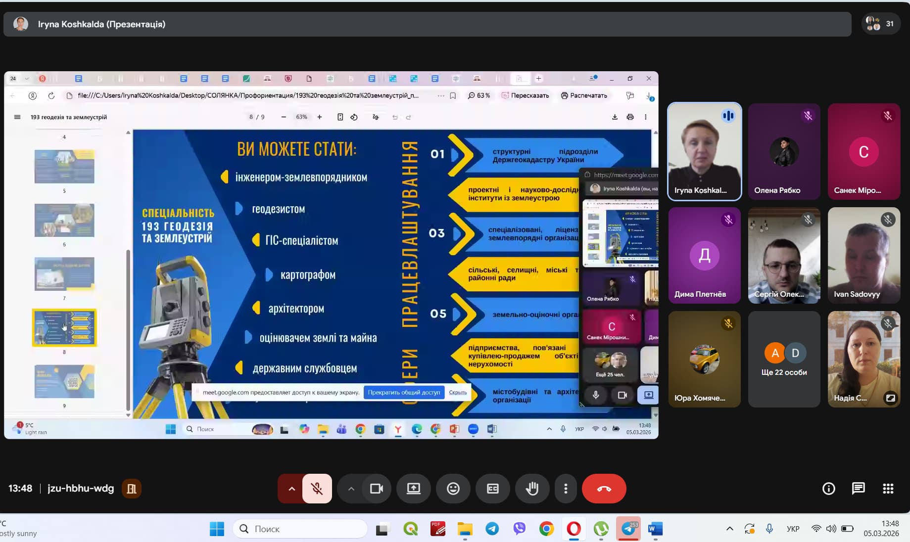 5 березня 2026 року викладачі кафедри управління земельними ресурсами, геодезії та кадастру Державного біотехнологічного університету провели профорієнтаційний захід для здобувачів Донбаського аграрного фахового коледжу Східноукраїнського національного університету імені Володимира Даля, які навчаються за спеціальністю «Геодезія та землеустрій».